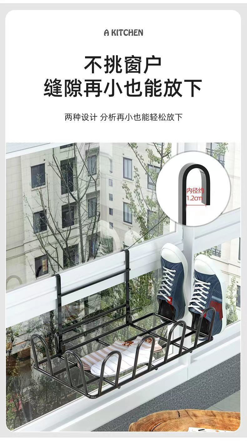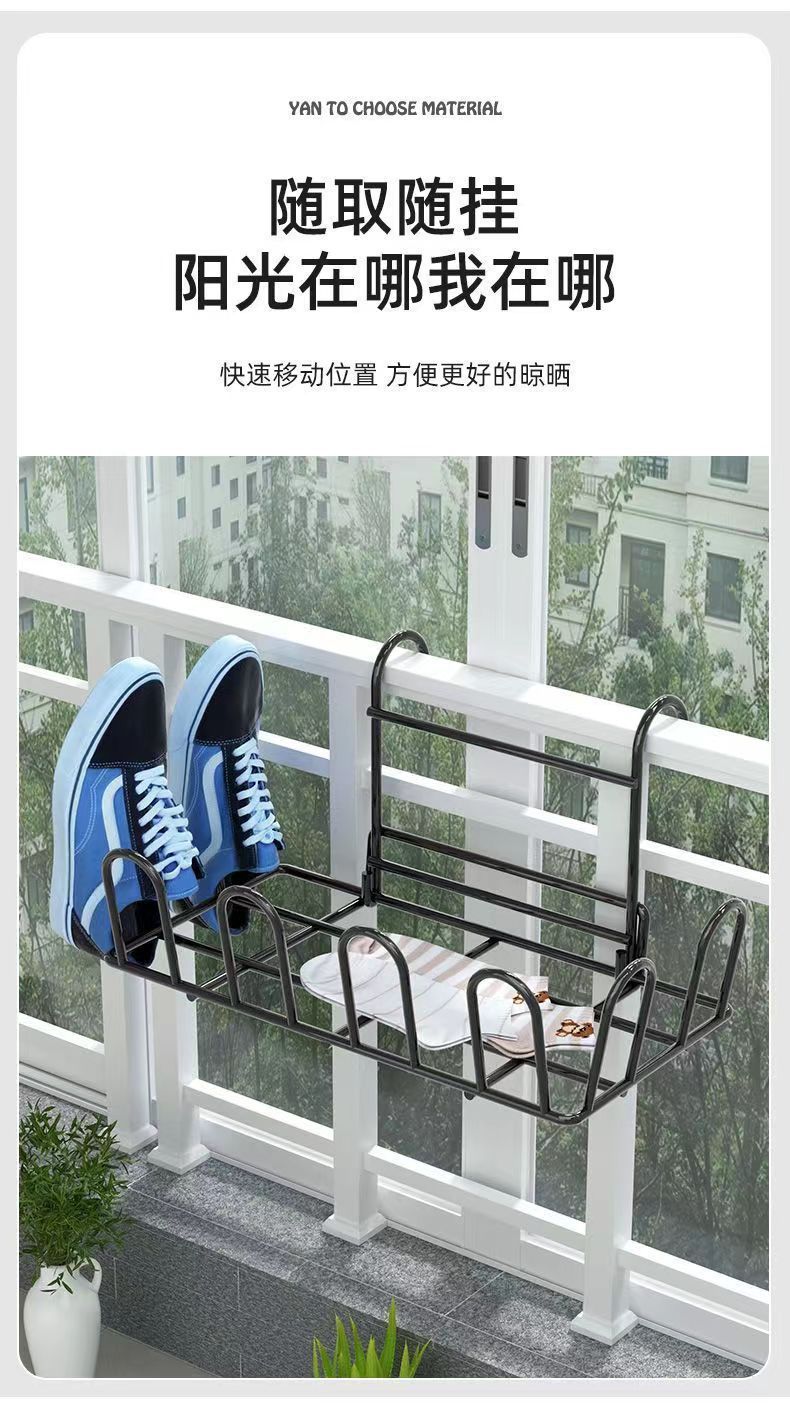 large black [10 shoes hanging]-window railing universal