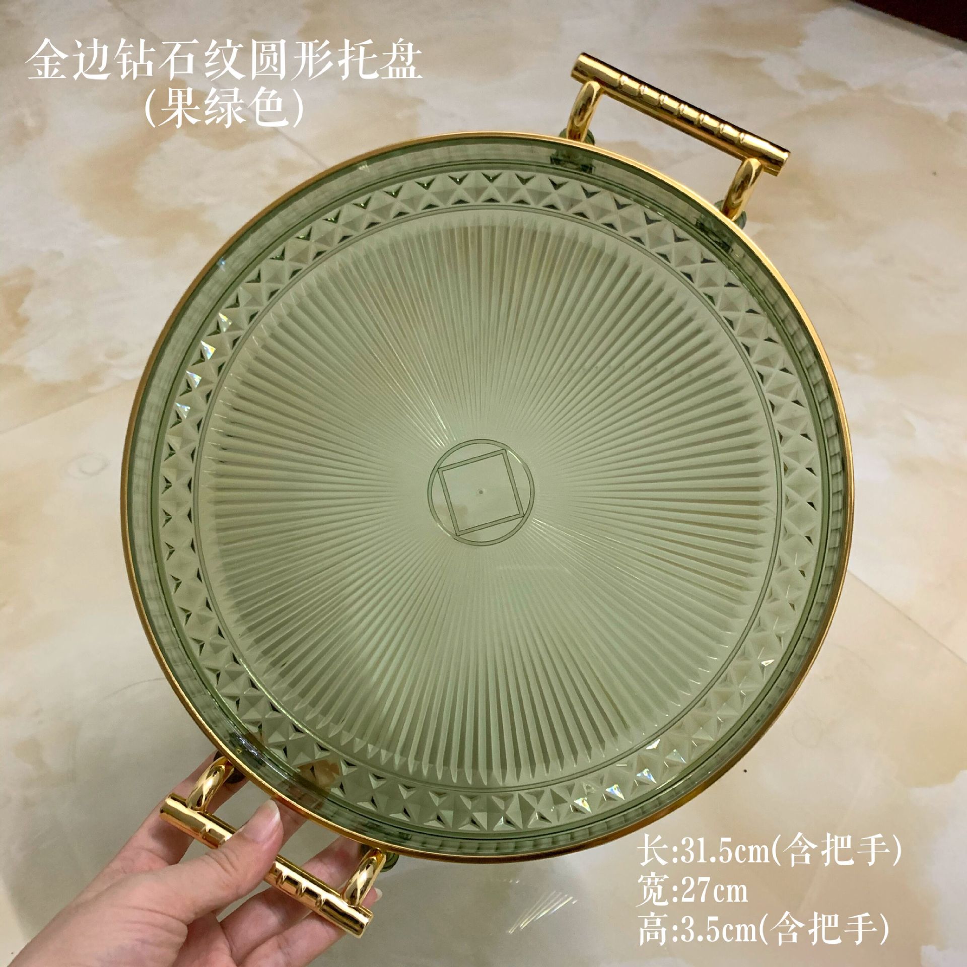 golden edge diamond pattern tray (fruit green)