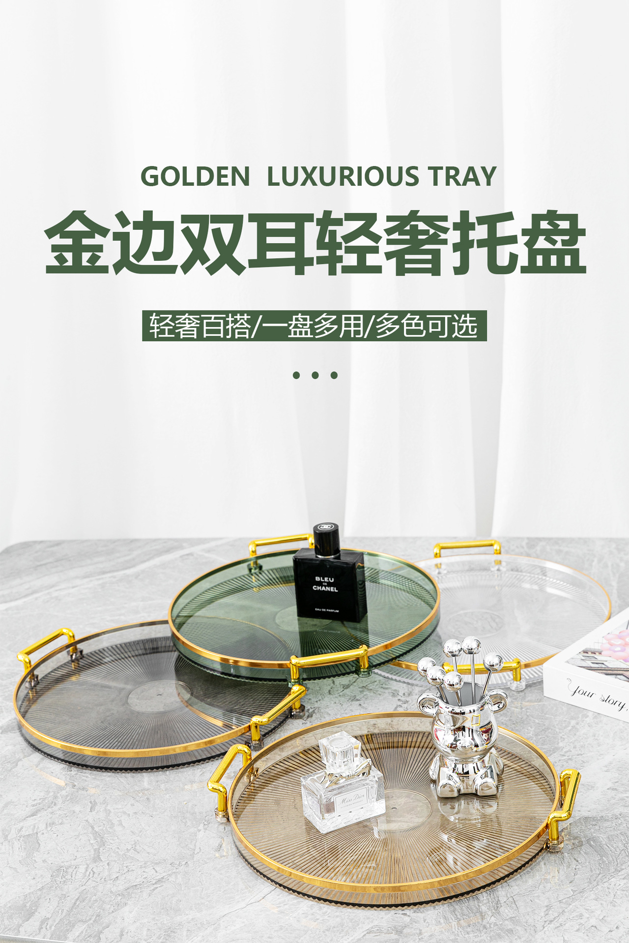 golden edge grain tray (transparent color)