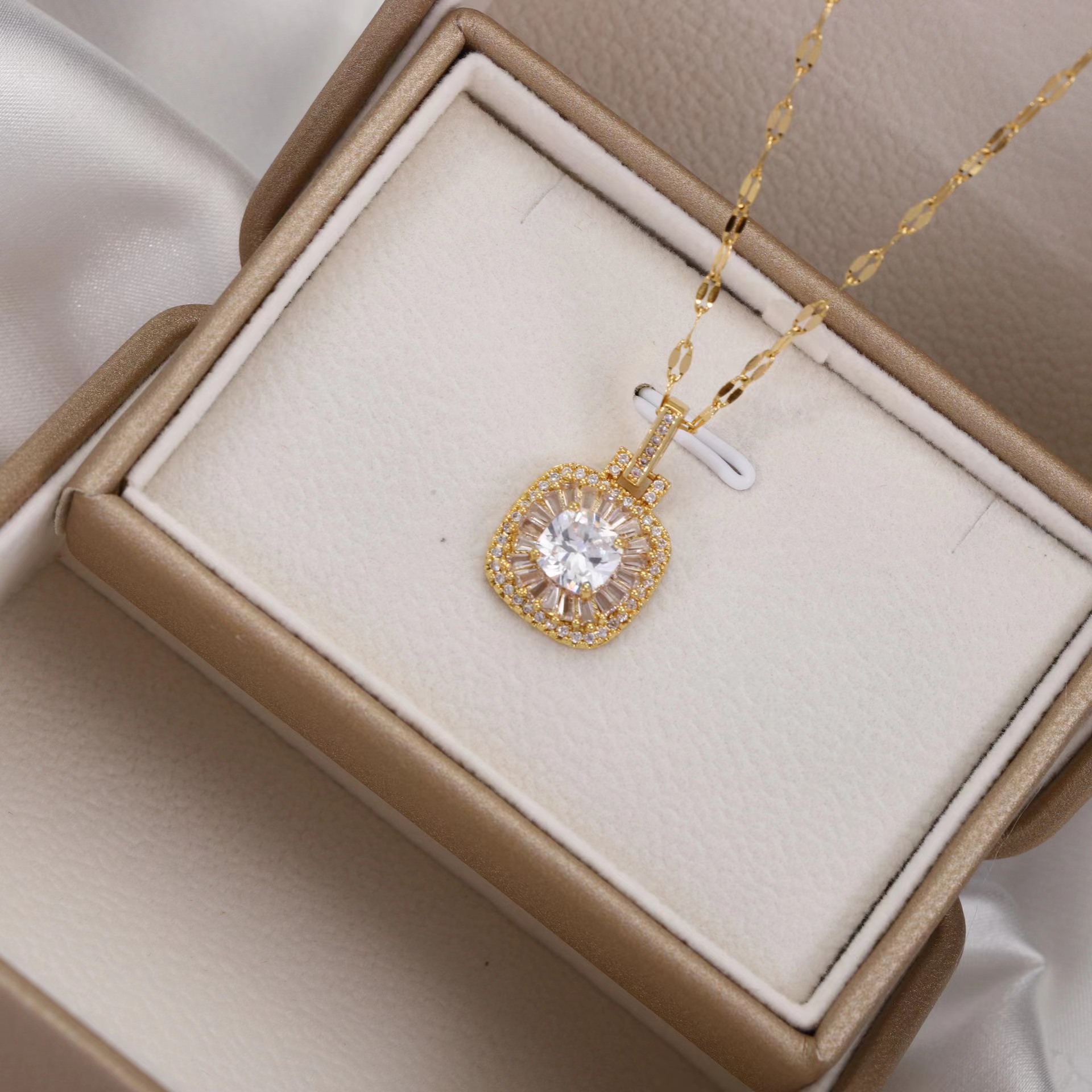 29-d-12 one row square diamond bracelet steel color