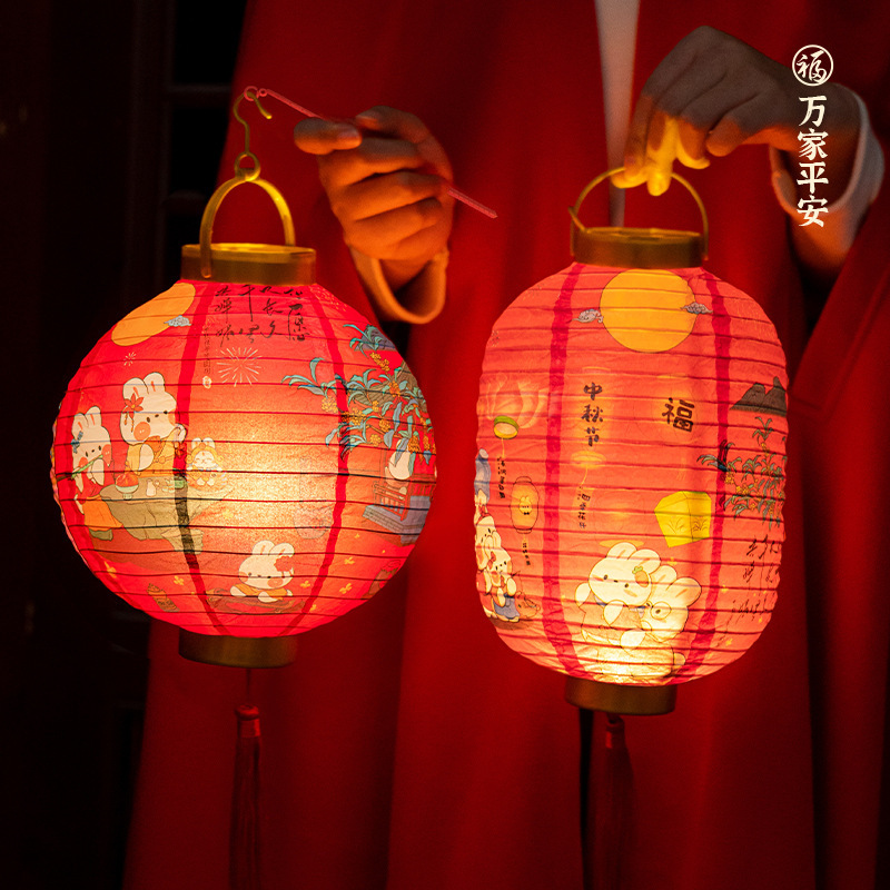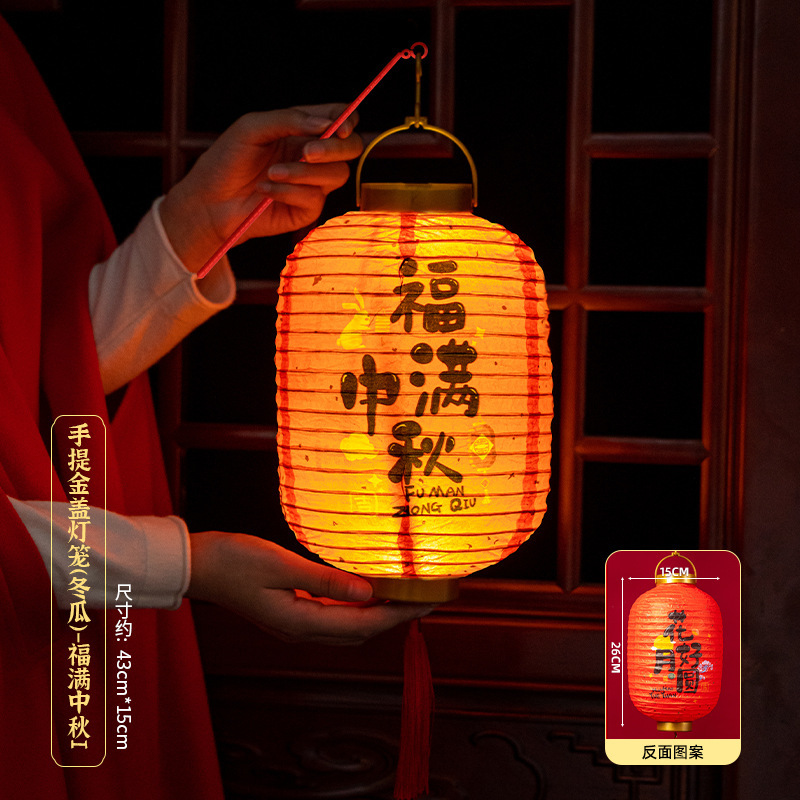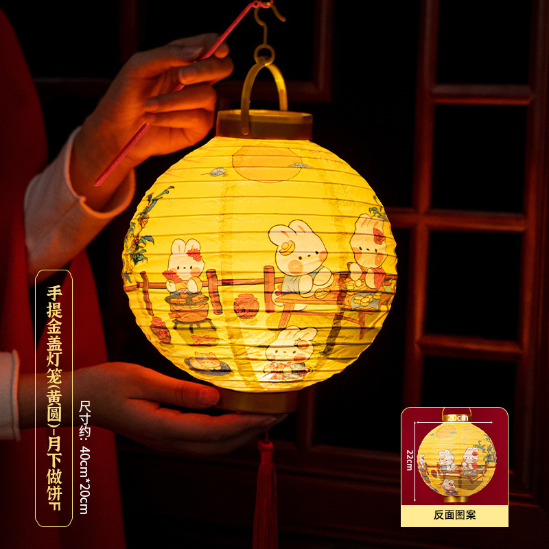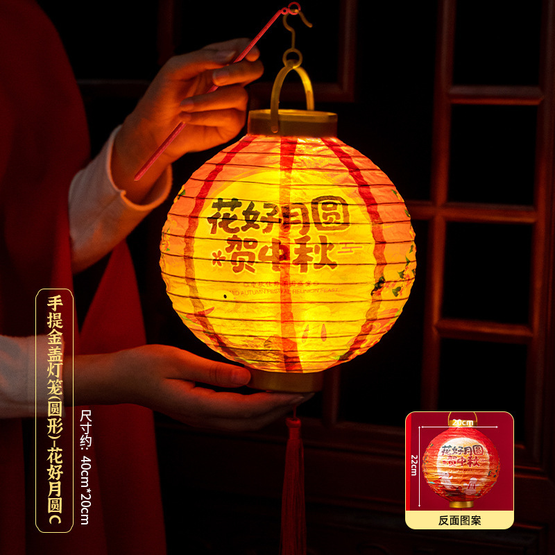 portable gold cover lantern (round)-mid-autumn festival b (get portable rod +2 batteries for free)
