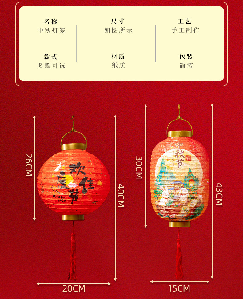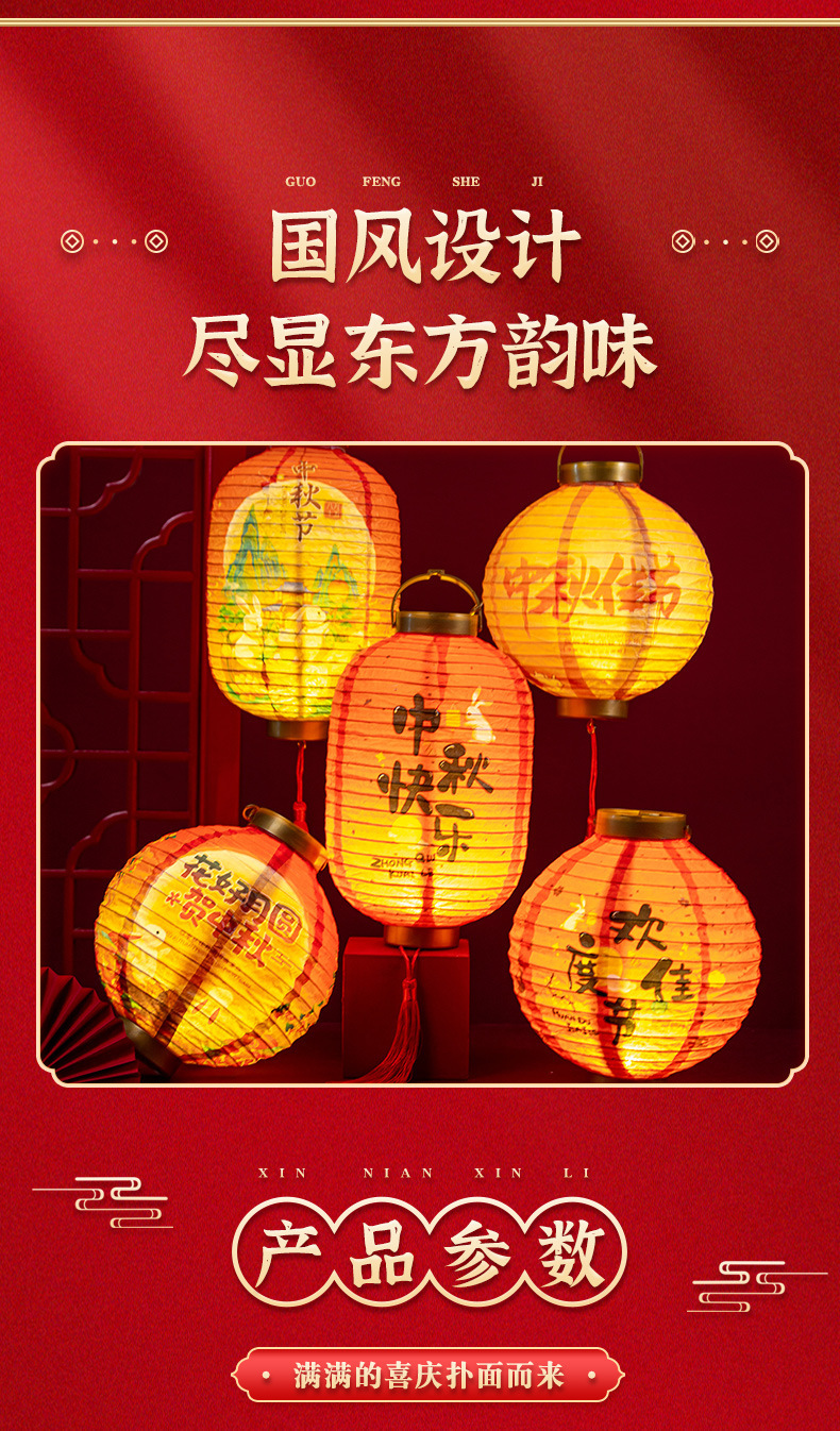 portable gold cover lantern (round)-happy mid-autumn festival a (get portable rod +2 batteries for free)