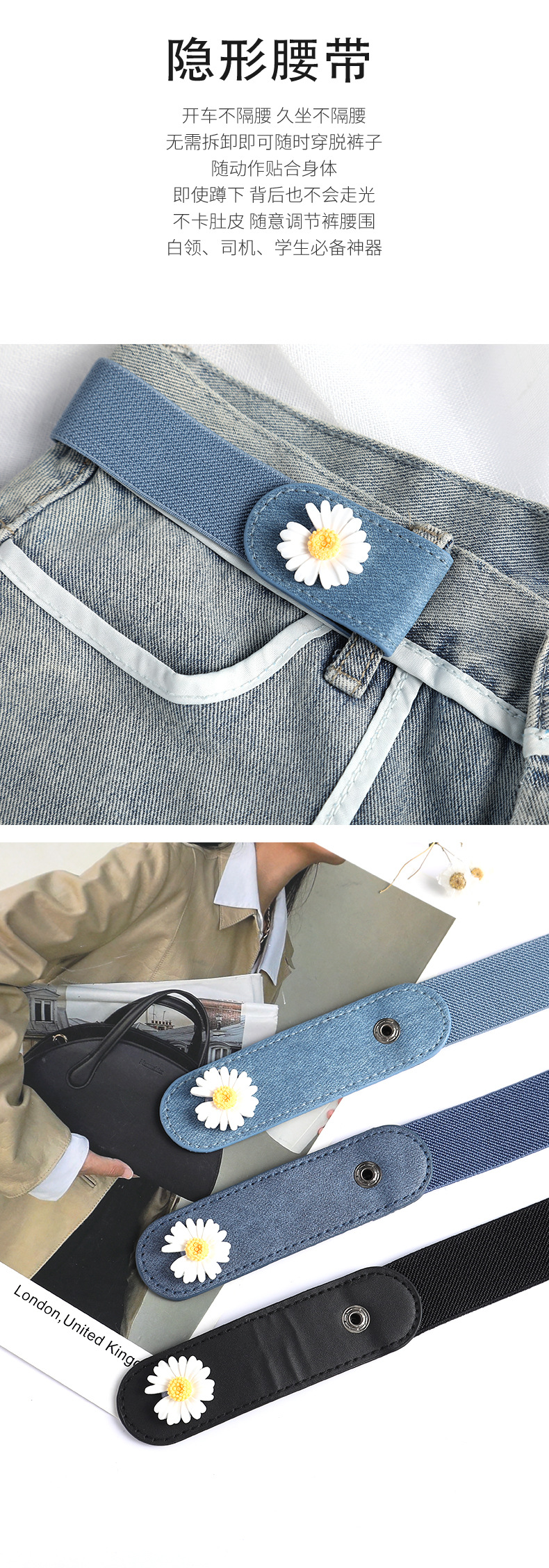 jeans belt seamless elastic men's all-match invisible elastic women's punch-free decoration ins style lazy belt
