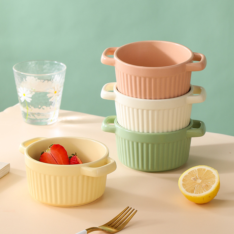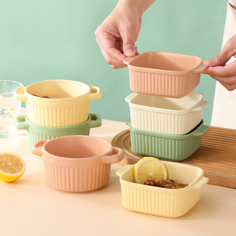 nordic ceramic binaural baking bowl oven air fryer suitable for binaural baking baking bowl baking bowl steamed egg bowl
