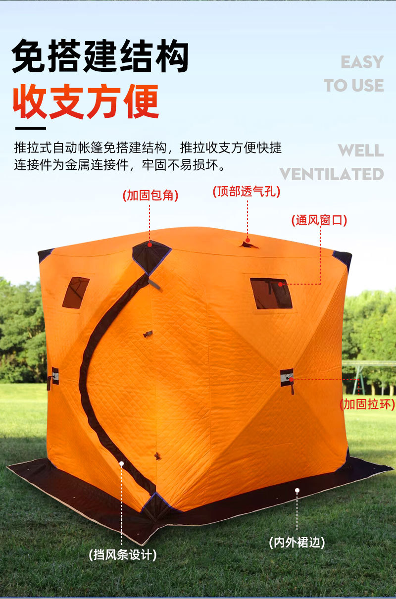Ice Fishing Tent Equipment Winter Fishing Thickened Cotton Padded Quickly Open Clearance Warm-Keeping and Cold-Proof Snow and Snow Single Three Or Four Double House