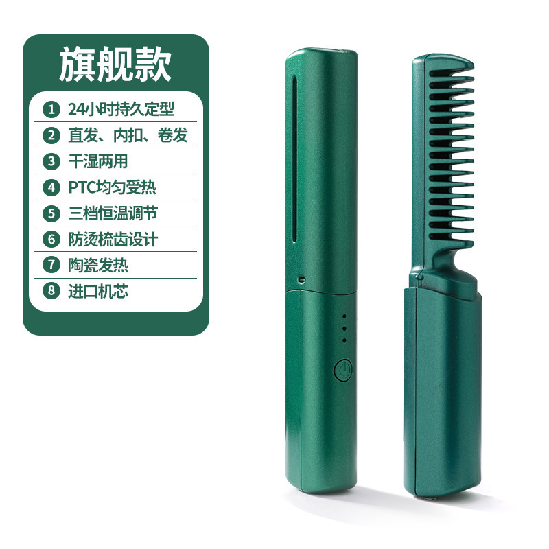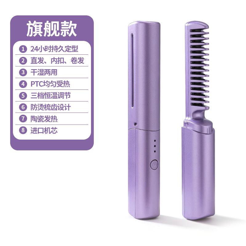 Cross-Border New Arrival Lazy Straight Comb Wireless Hair Straighteners Small USB Charging Portable Travel for Curling