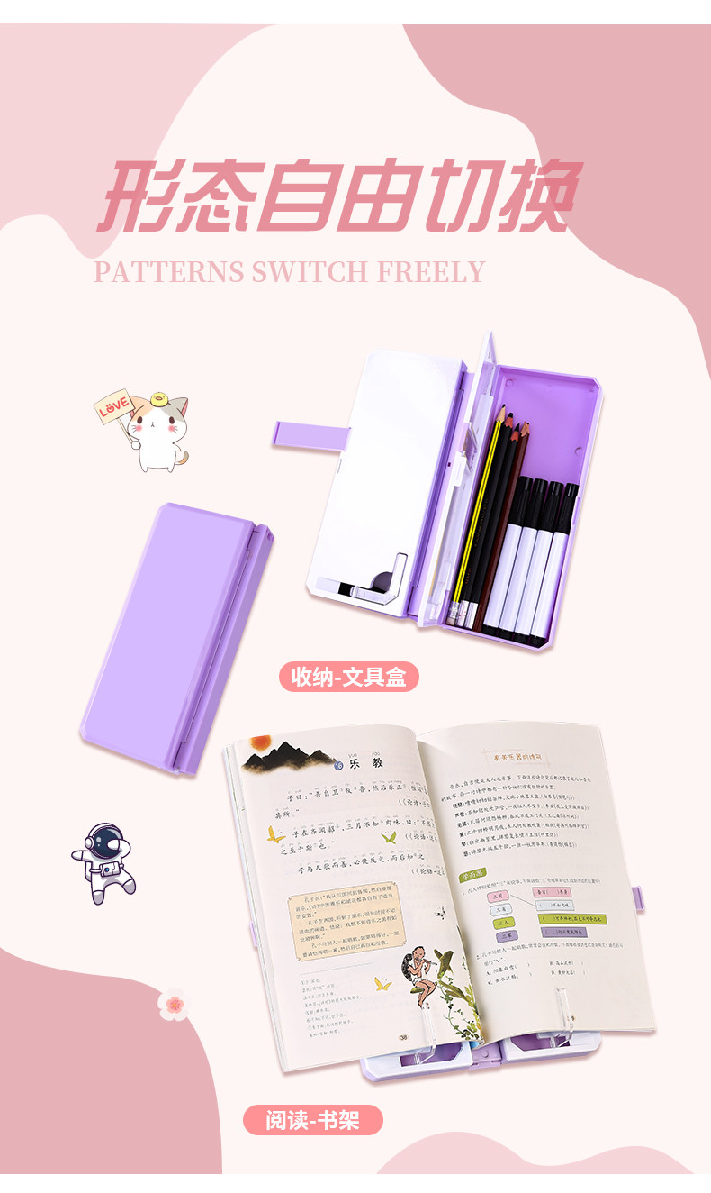 reading bookshelf pencil case-girl pink get exquisite stickers + class schedule