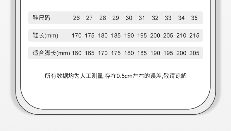 | 31 (suitable for foot length cm) | CN¥ 10.69 | 999999 pair available |