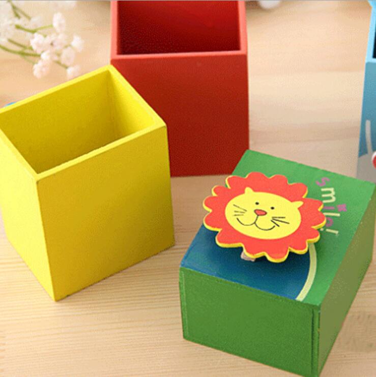 Korean Creative School Office Stationery Wooden Cute Painted Animal Pen Holder with Note Clip Factory Wholesale