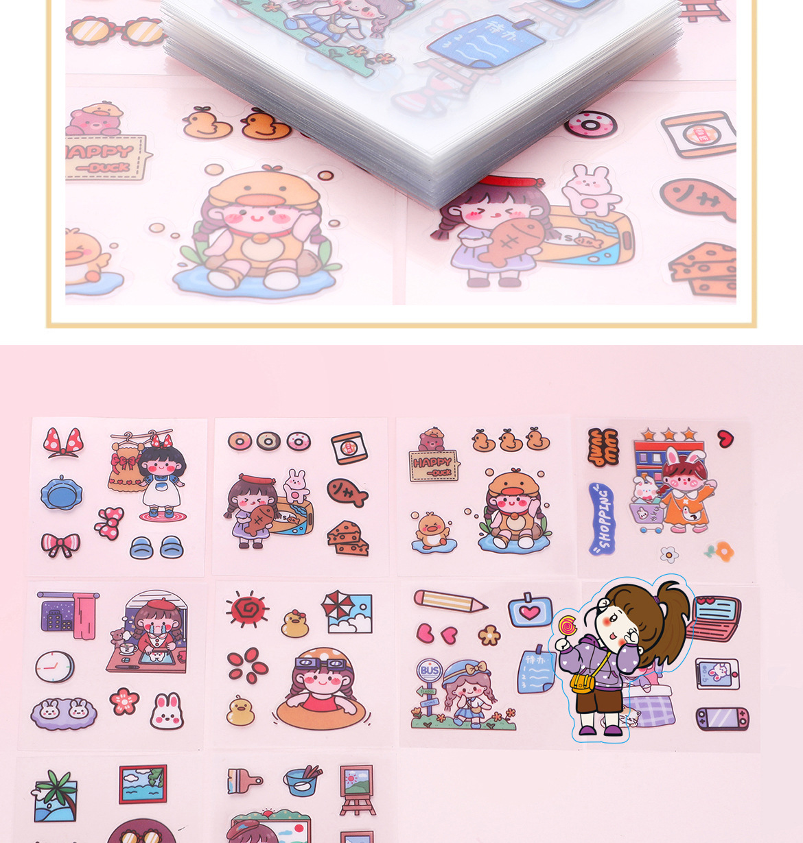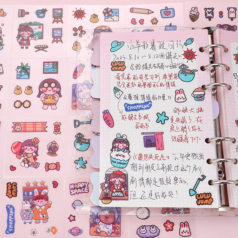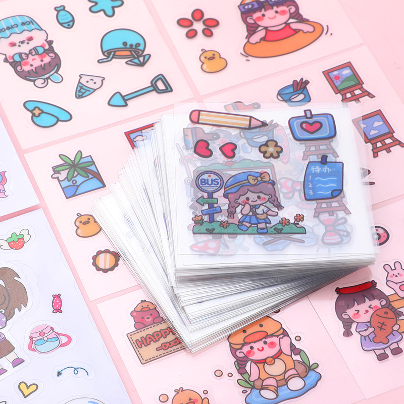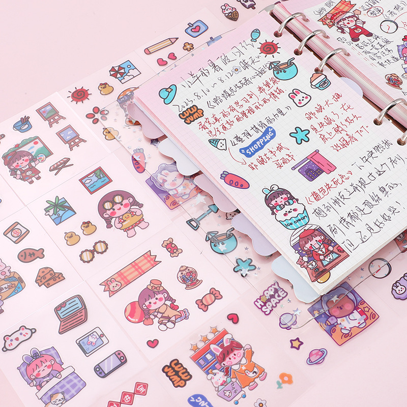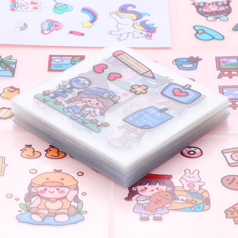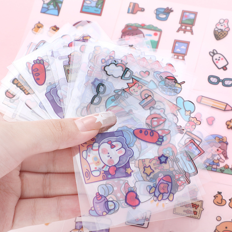 Children's Stickers Transparent Sticker Cartoon Drinking Cup Paste Decorative Small Pattern Waterproof and Traceless Pet Journal Book Sticker