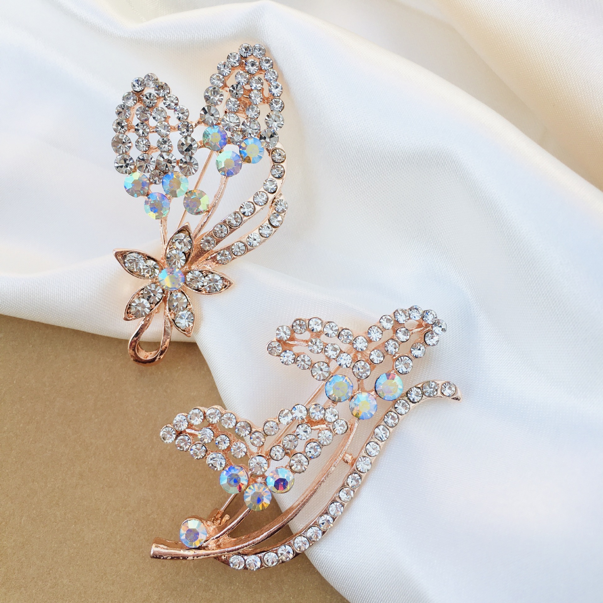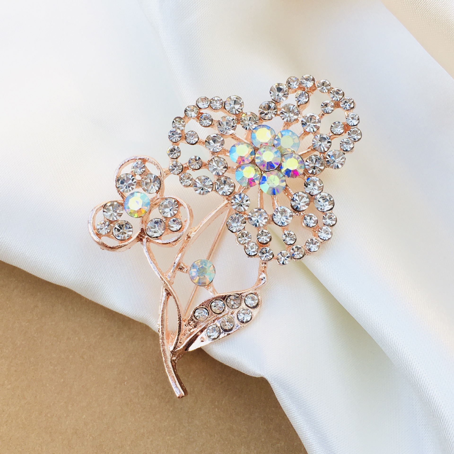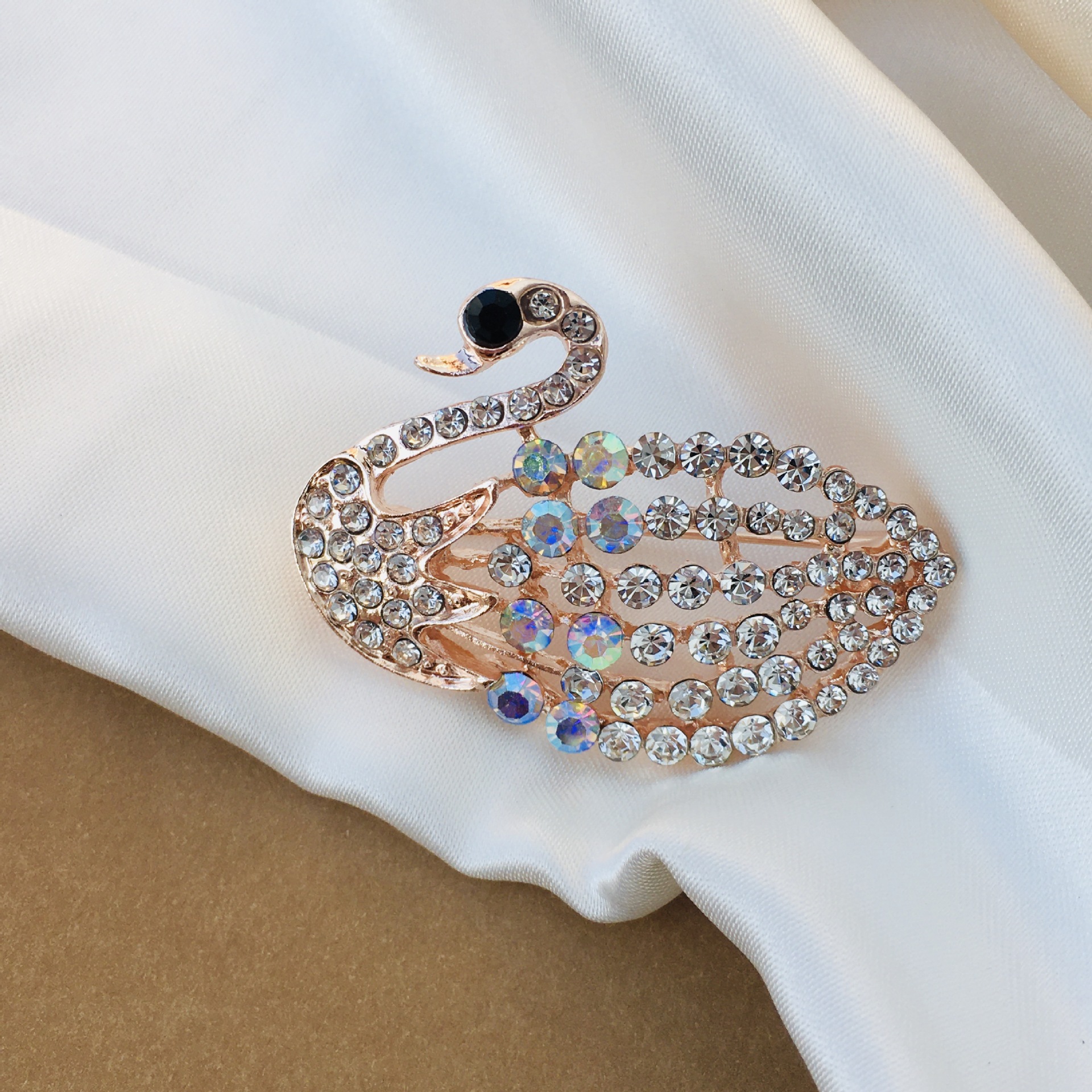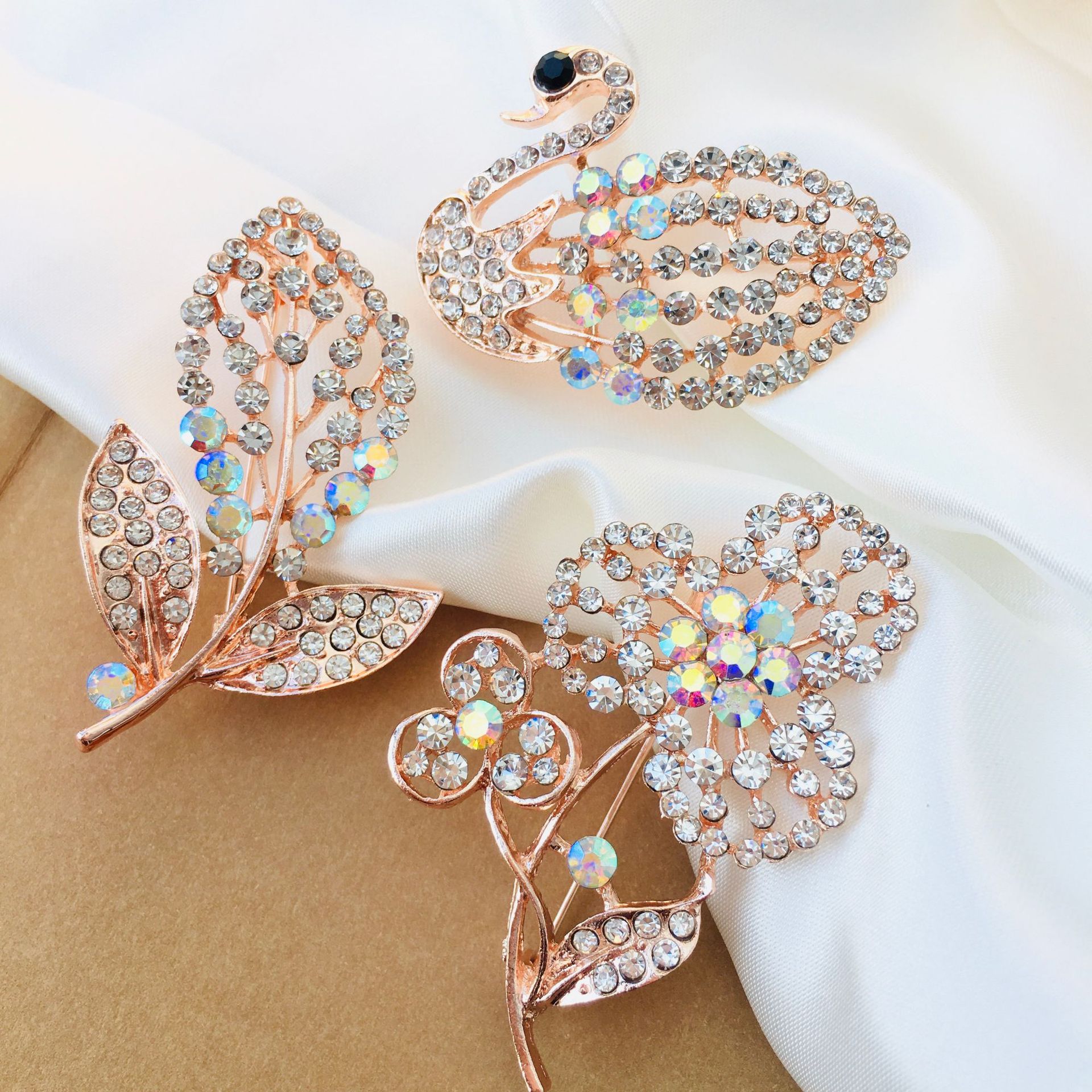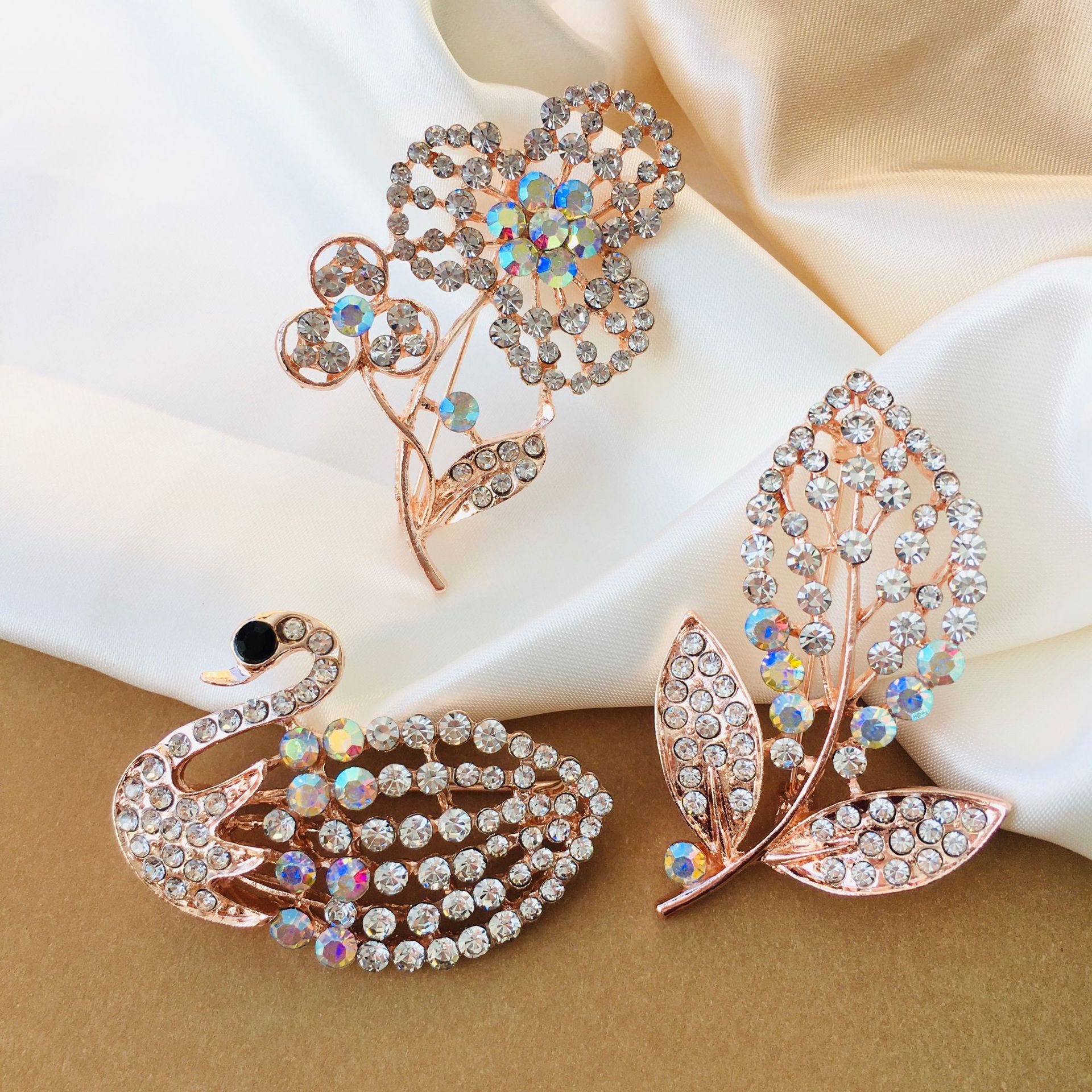 High-End Full Diamond Light Luxury Temperament Brooch High-Grade Exquisite Swan Leaves Cute Japanese Style Female Cardigan Pin Ornament