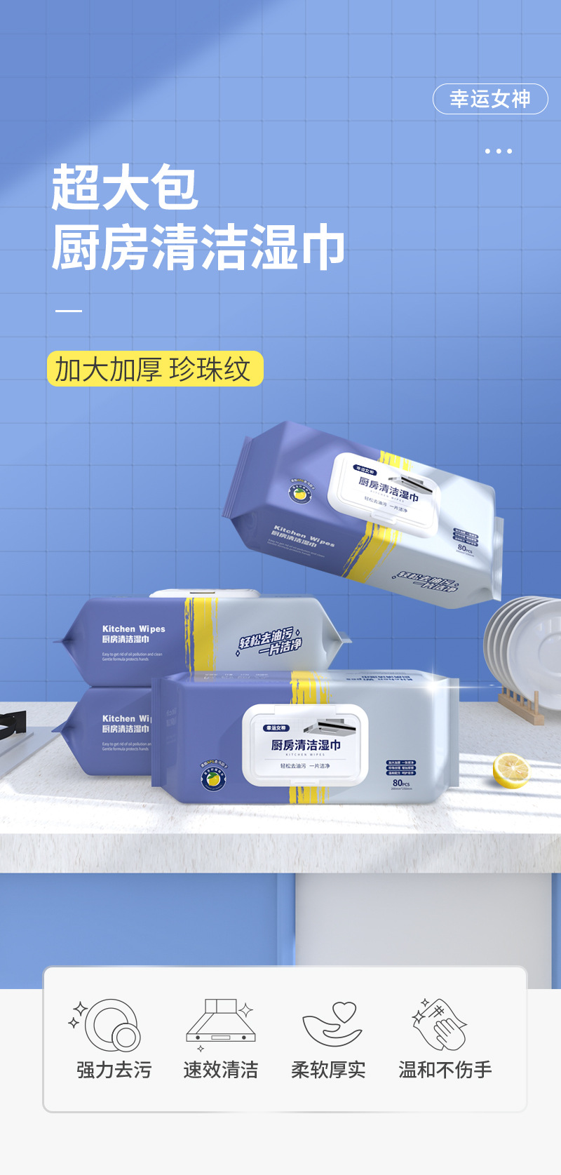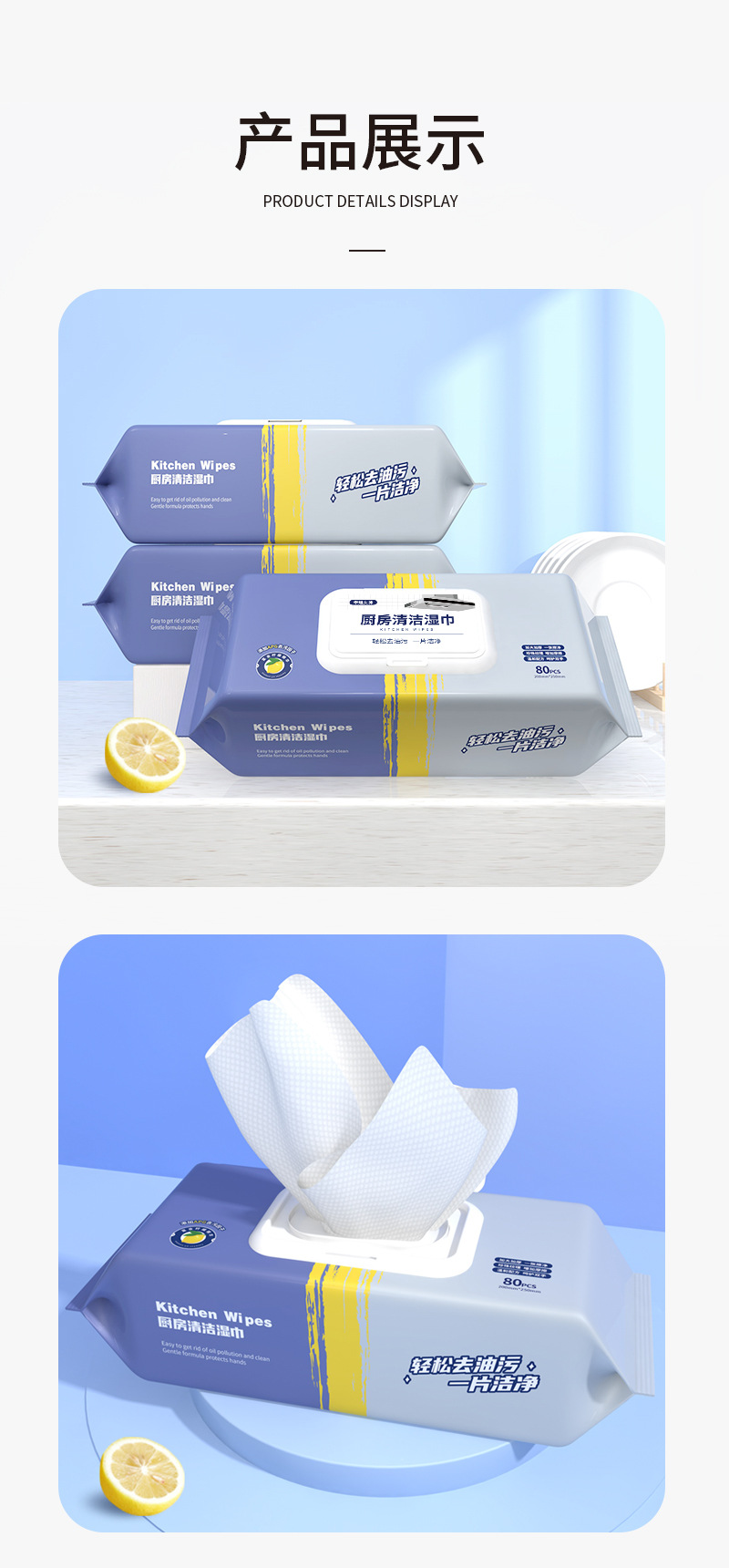 In Stock Wholesale Large Size Thickened Kitchen Cleaning Wipes Disposable Oil Removing and Decontamination Wet Cleaning Paper Wet Tissue