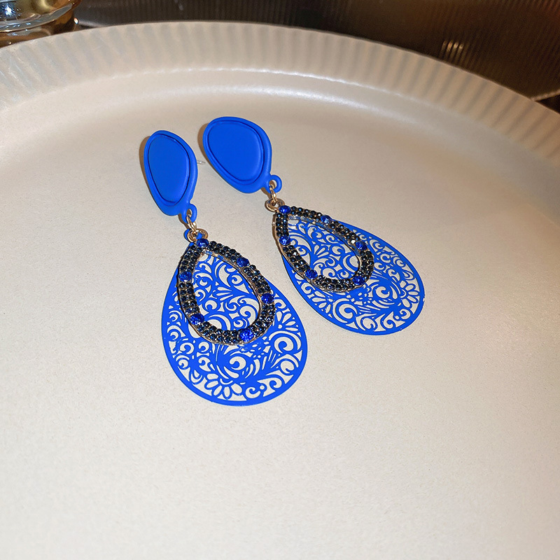 34# ear hook-blue diamond tassel