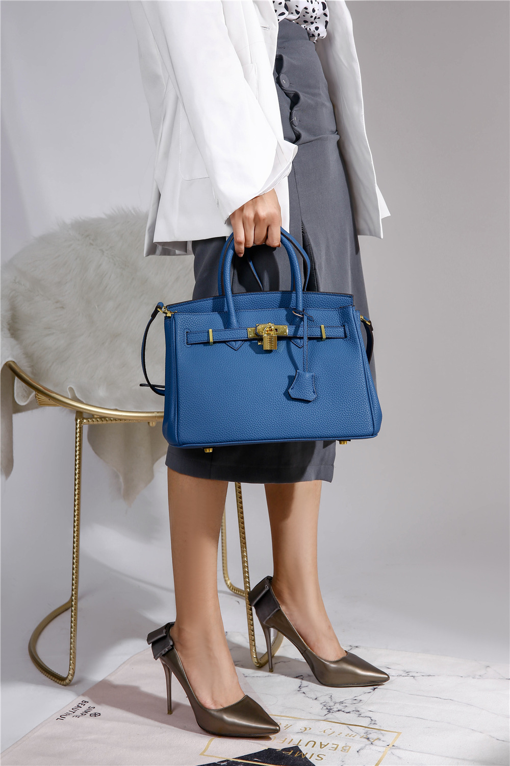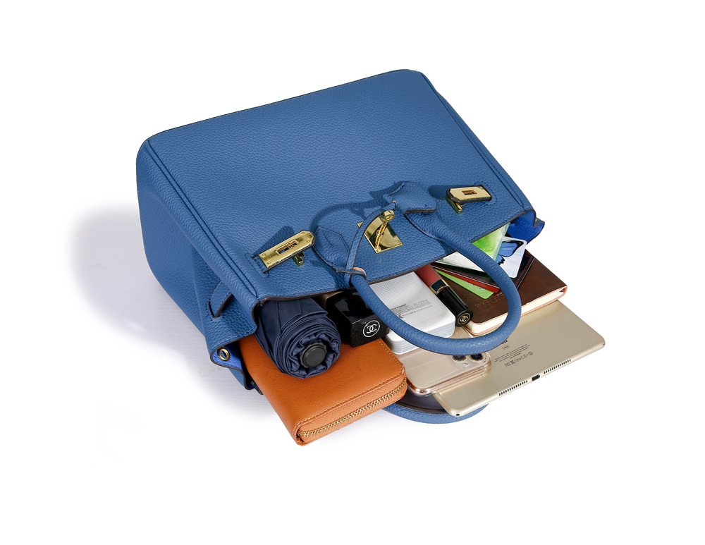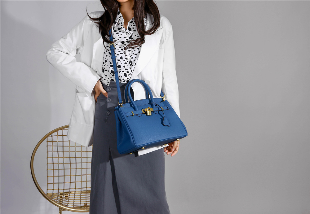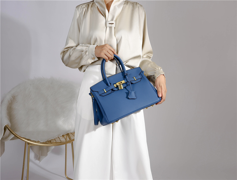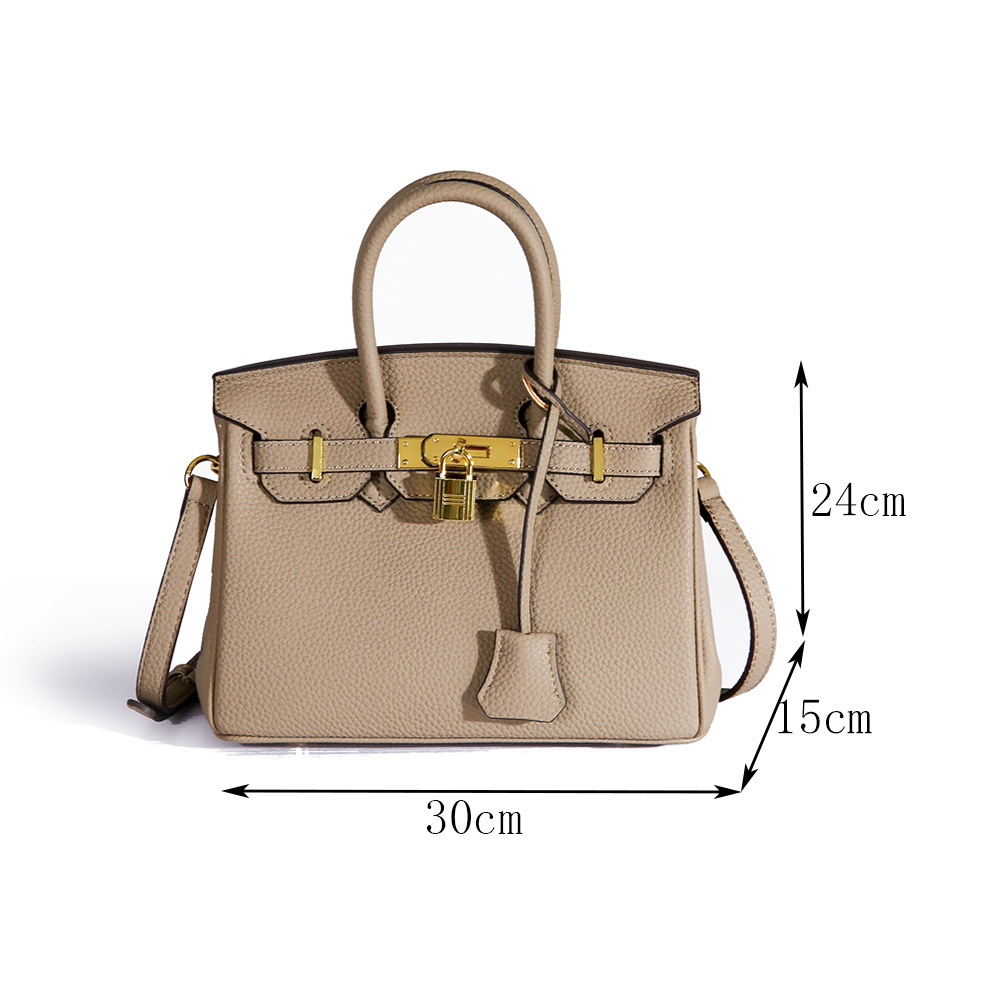 Kelly Bag Women's New Fashion Litchi Pattern Birkin Bag Large Capacity Commuter Bag One Shoulder Crossbody Handbags