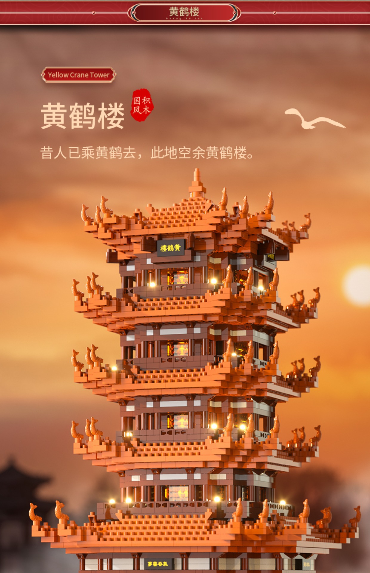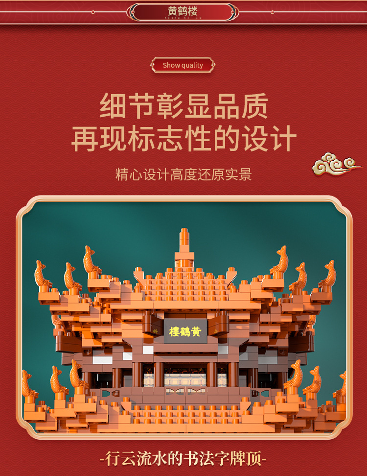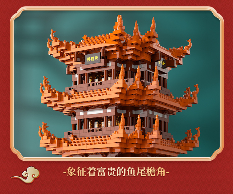 [Color Box without Light] Super Small Yellow Crane Tower 800 + PCs [Color Box Packaging]]