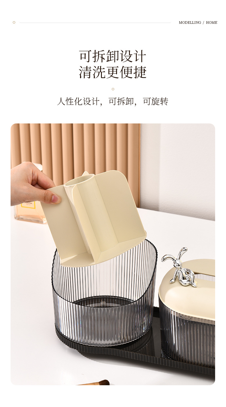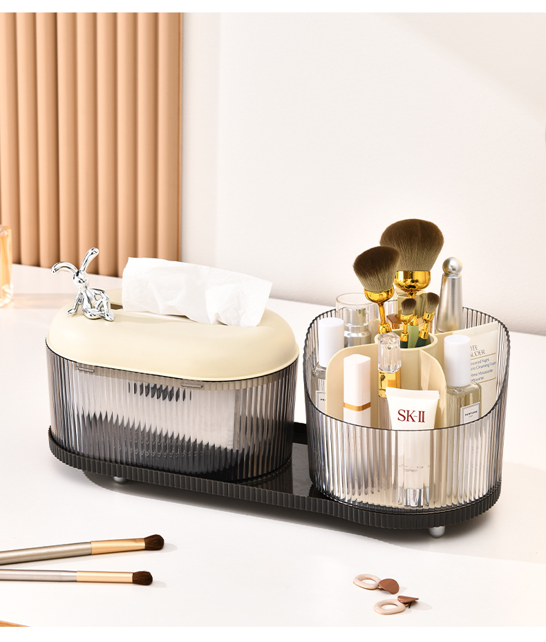 Rotating Storage Box + Tissue Box (Cream White + Transparent Gray)