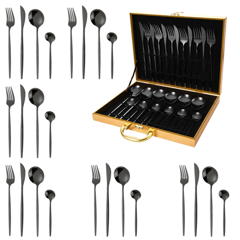 Portugal 24-Piece Set (Black) Gold Wooden Box