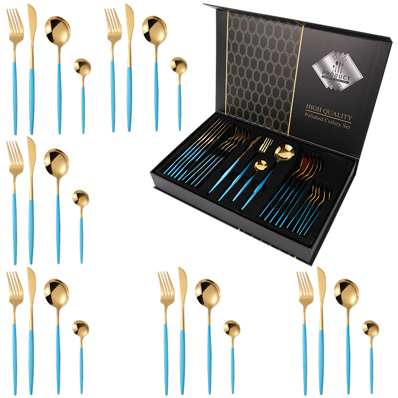 Portugal 24-Piece Set (Golden Blue) Black Flip Box