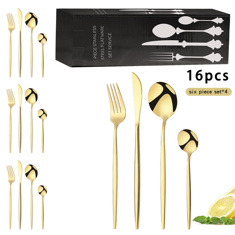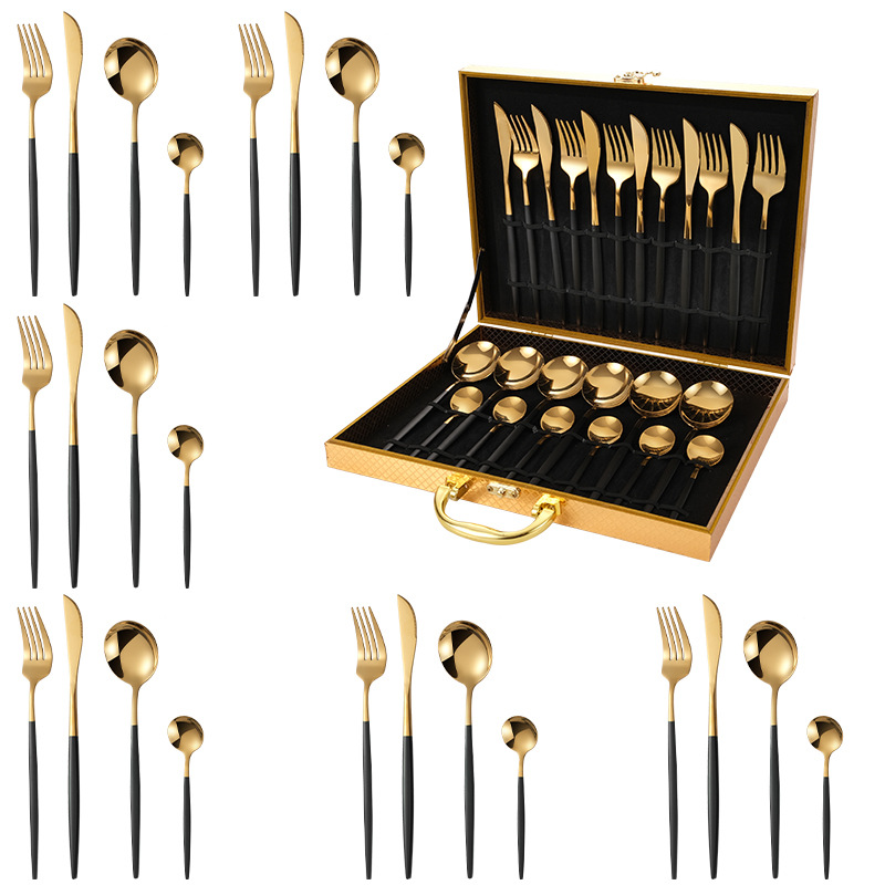 Portugal 24-Piece Set (Gold Black) Gold Wooden Box