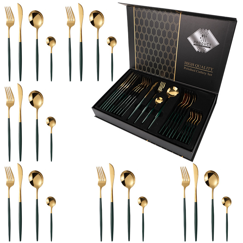 Portugal 24-Piece Set (Gold Dark Green) Black Flip Box