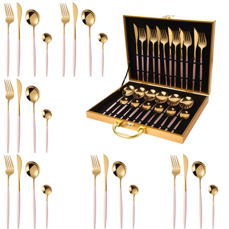 Portugal 24-Piece Set (Rose Gold) Gold Wooden Box