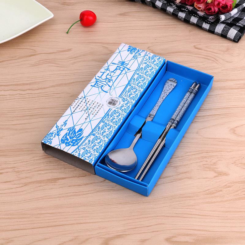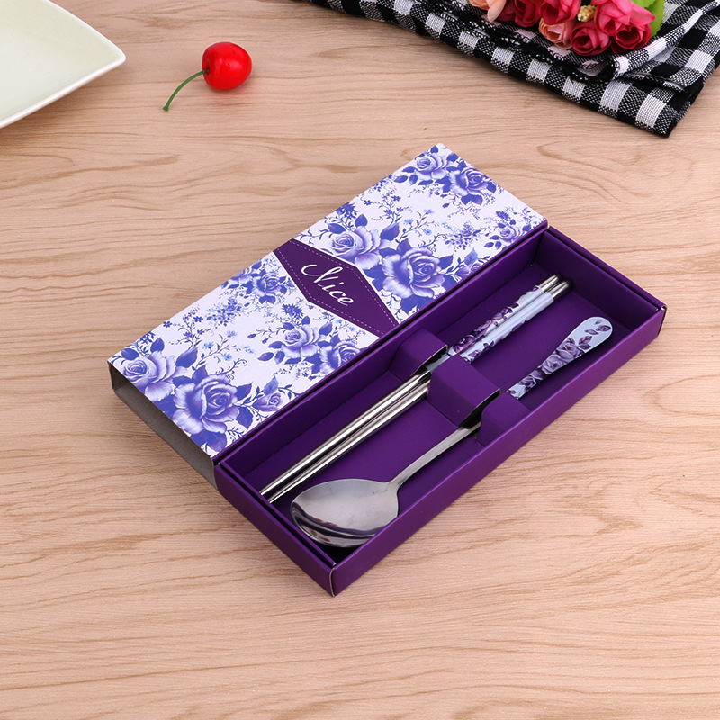 Three-Piece Blue and White Porcelain (Chopsticks Spoon Fork)