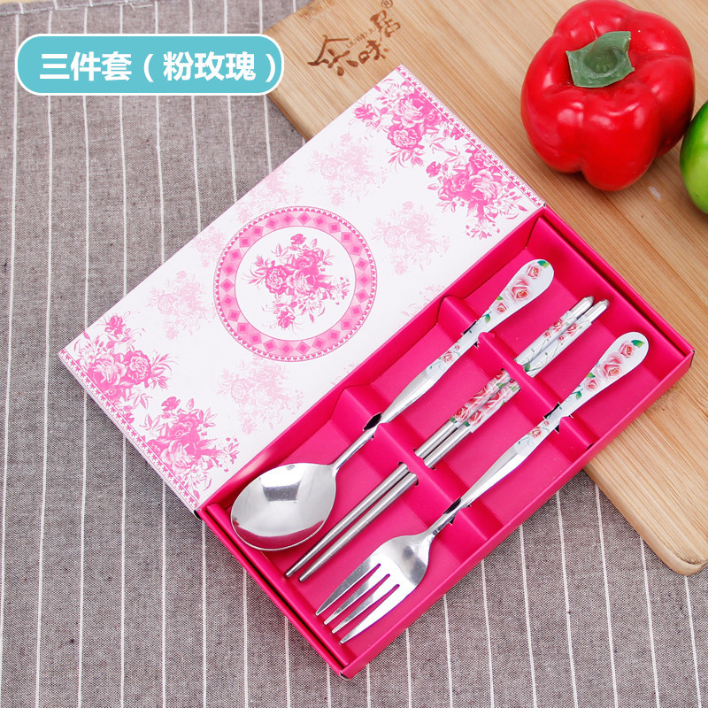 Three-Piece Set Pink Rose (Chopsticks Spoon Fork)