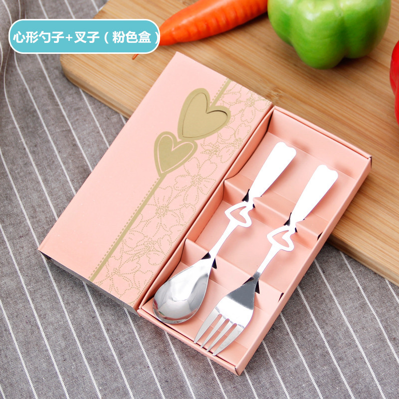 Heart-Shaped Spoon Fork Set (Pink Box)
