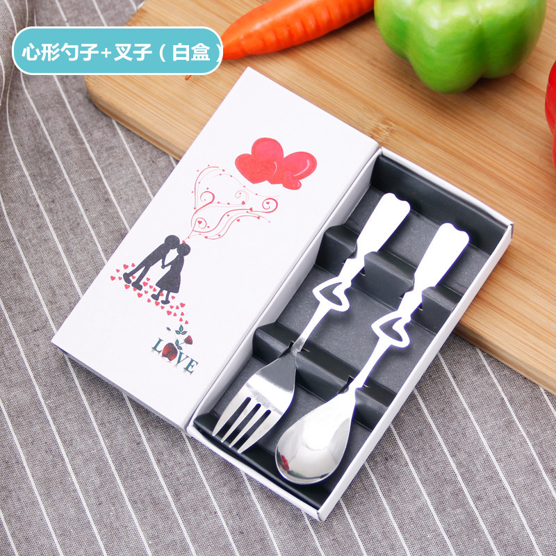 Heart-Shaped Spoon Fork Set (White Box)