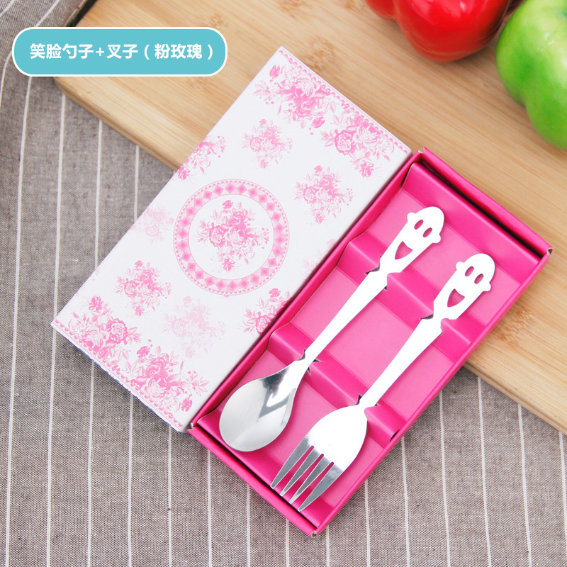 Smiley Face Spoon Fork Set (Pink Rose)