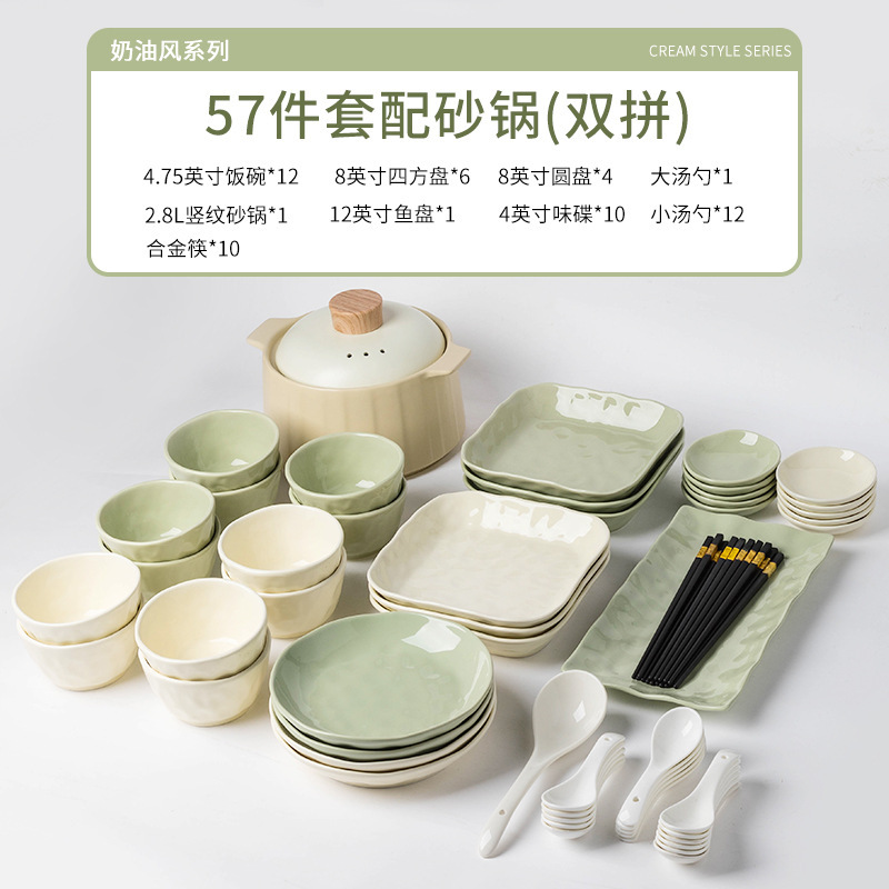 57-Piece Set with Casserole [Custard Creamy Green Pairs]]