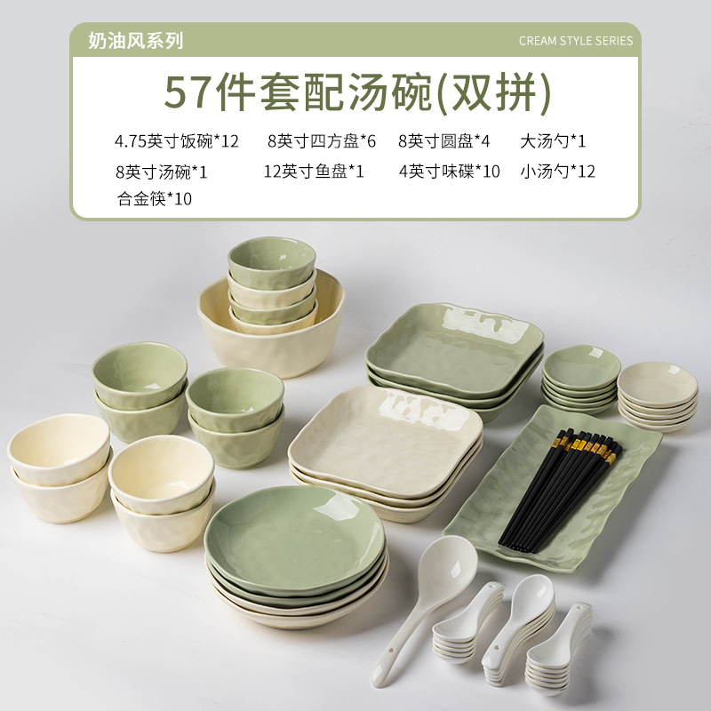 57-Piece Set with Soup Bowl [Custard Creamy Green Pairs]]