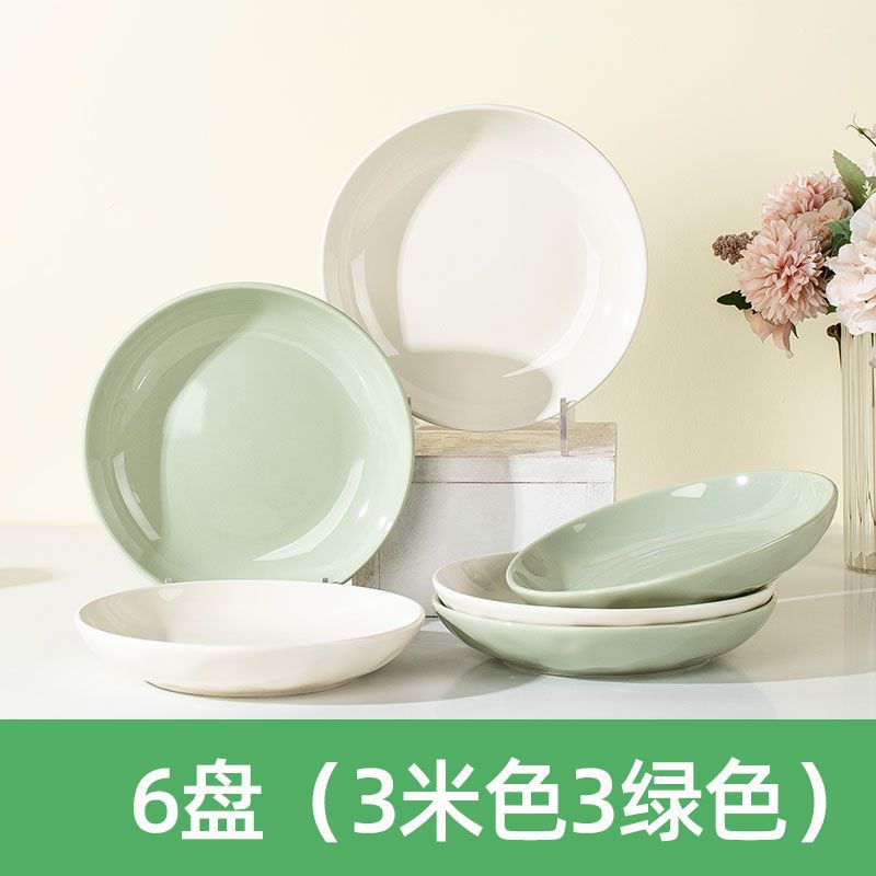 6 Square Plate [3 Green 3 Beige]]