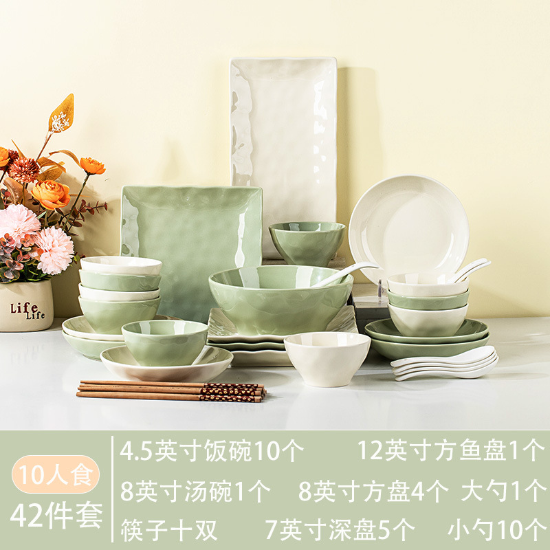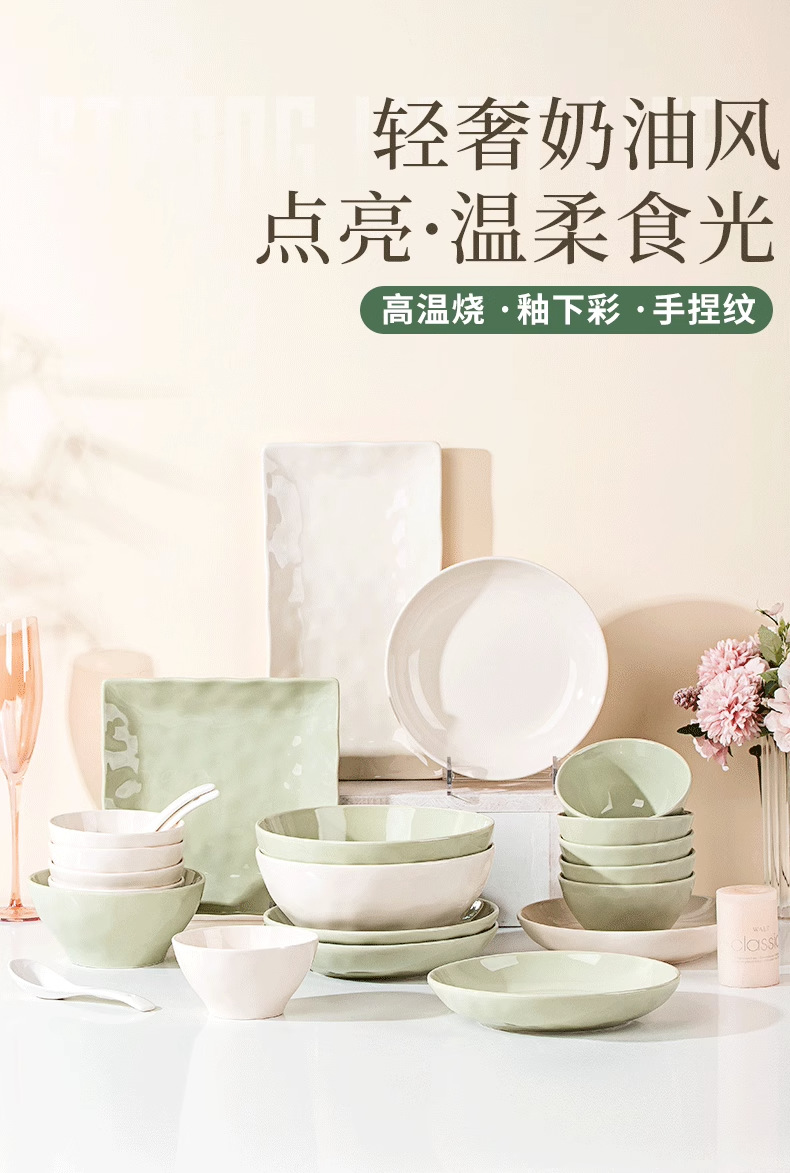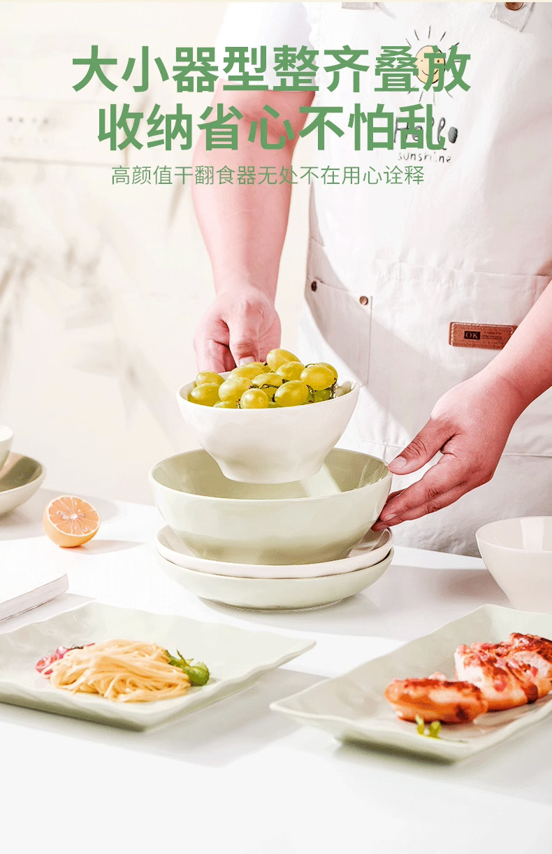 8 Bowls [4 Green 4 Beige]]