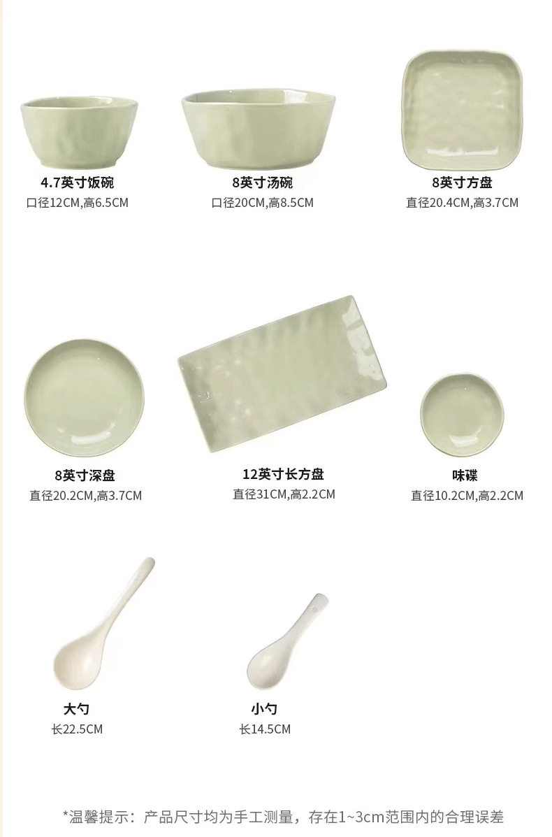 2 Bowls, 2 Plates, 2 Spoons, 1 Soup Bowl, 1 Soup Spoon, 2 Chopsticks