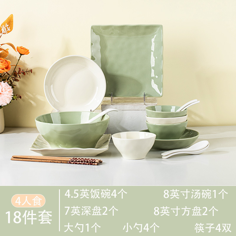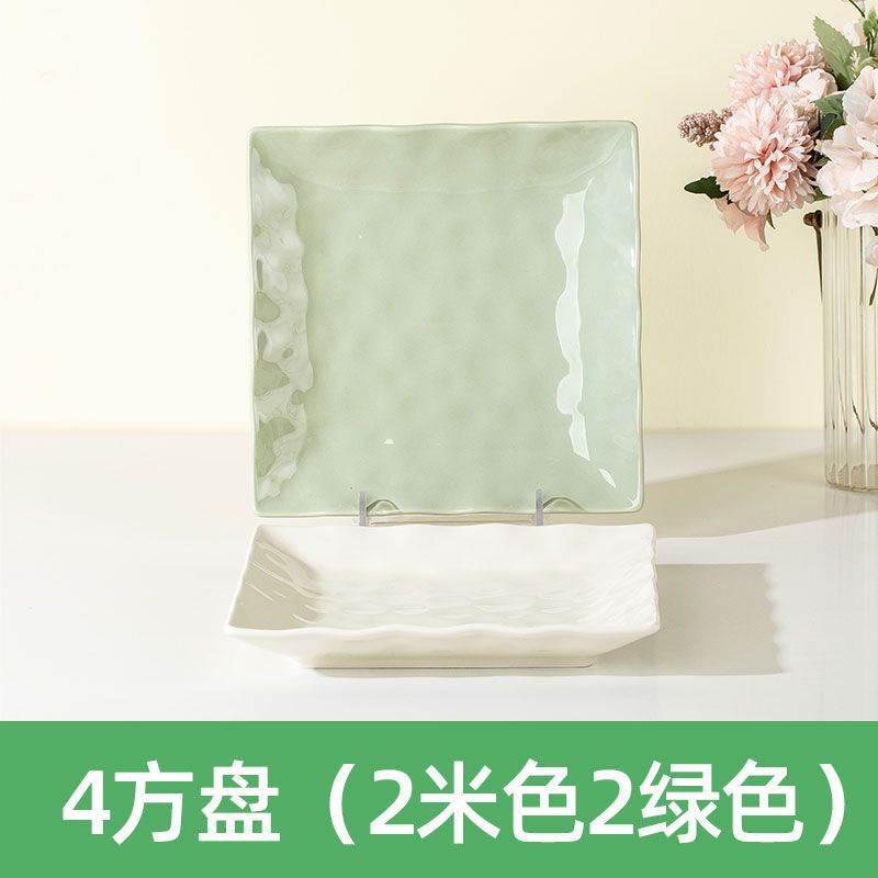 4 Square Plate [2 Green 2 Beige]]