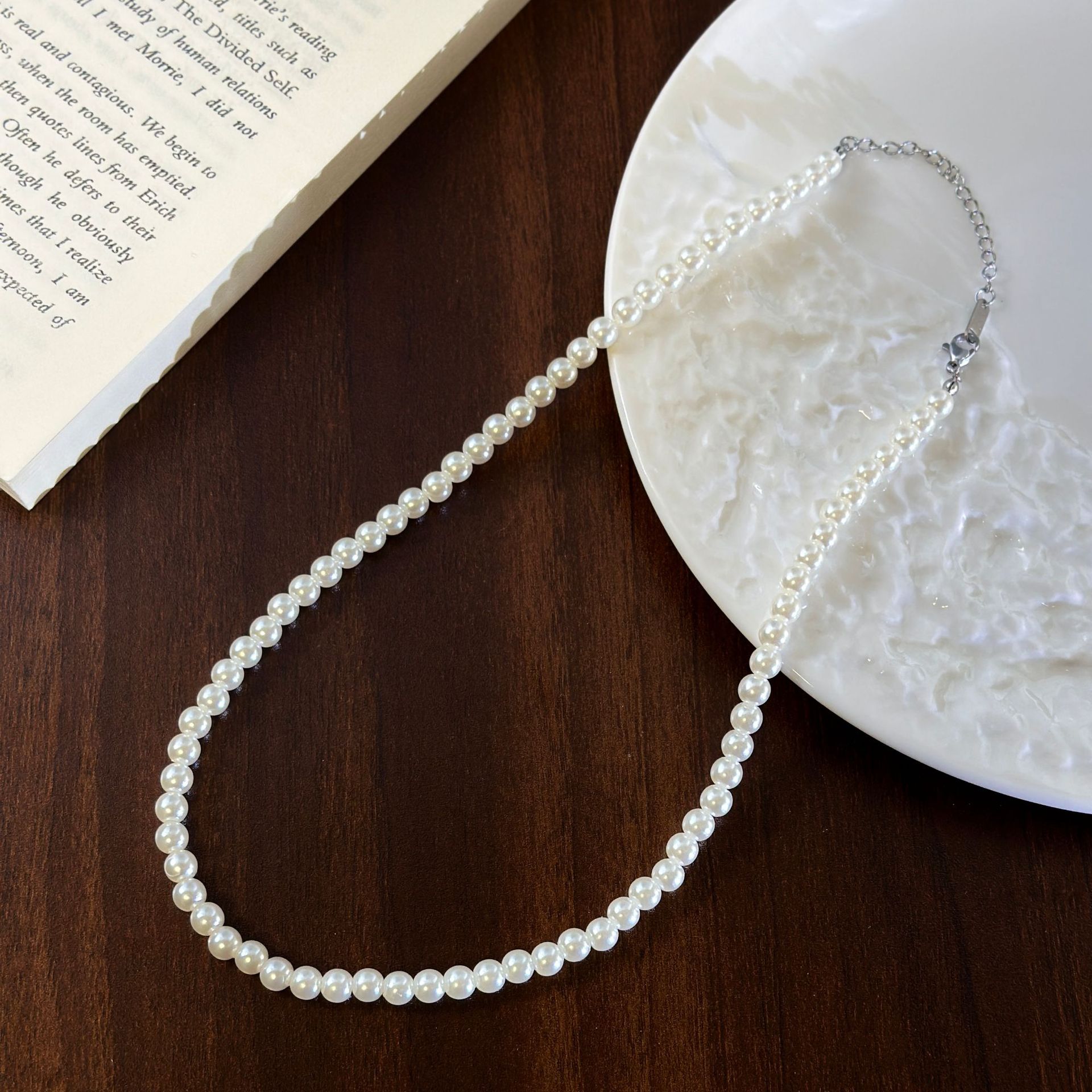 Pearl Necklace-6mm/Steel Chain