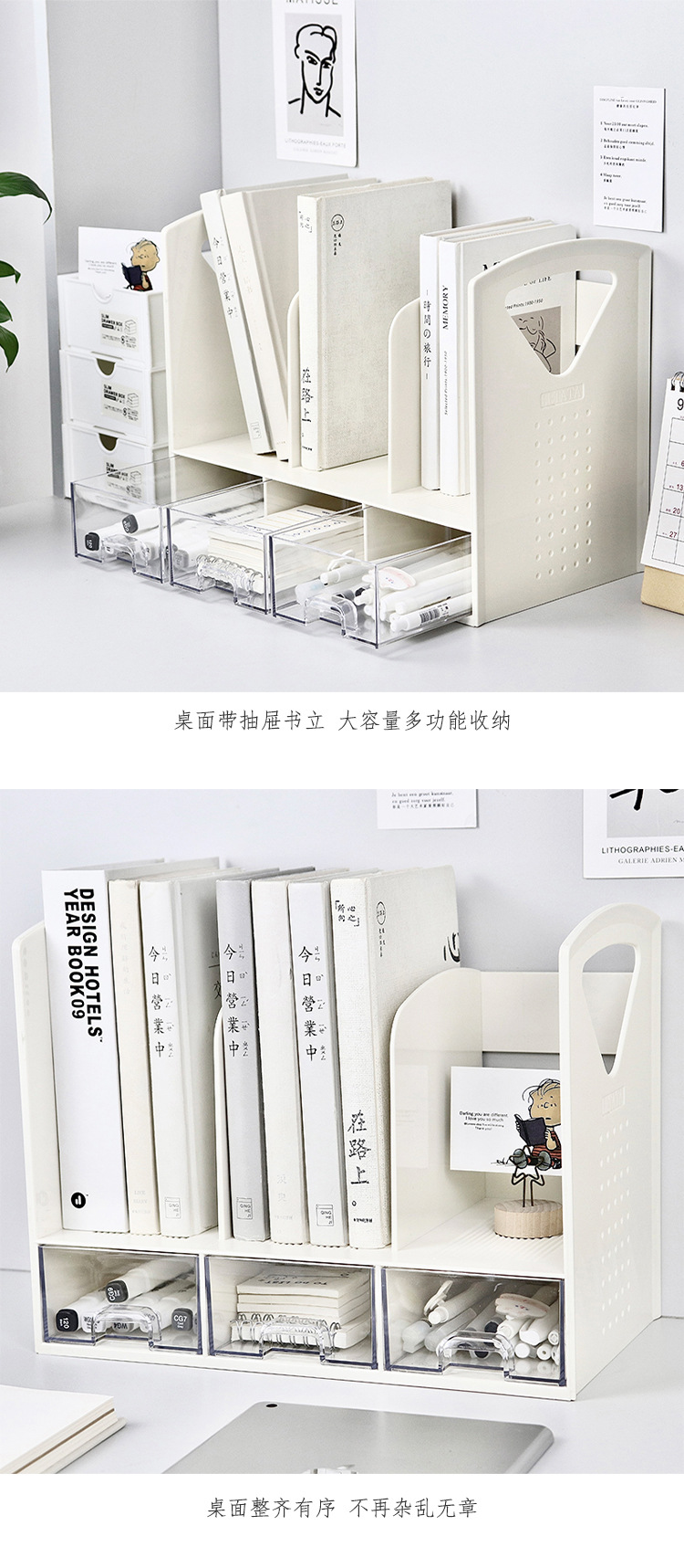 Desktop Bookshelf Simple Book Stand Book Shelf Book Storage Rack with Drawer Book Stand Box Student Bookshelf