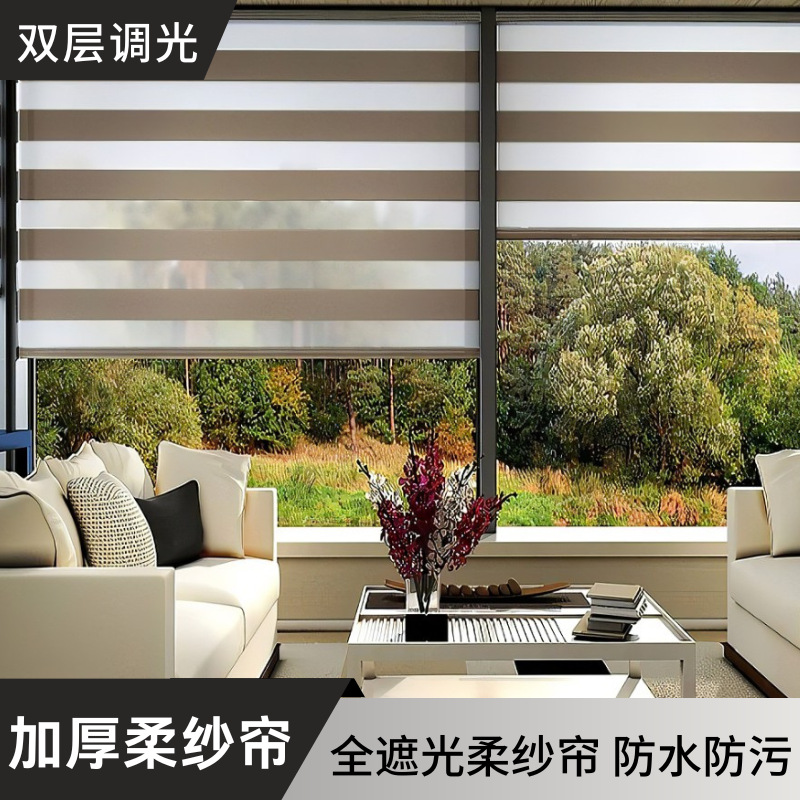 Kitchen full shading soft gauze curtain bathroom double-layer thickened waterproof lifting double roller blind office louver shading curtain