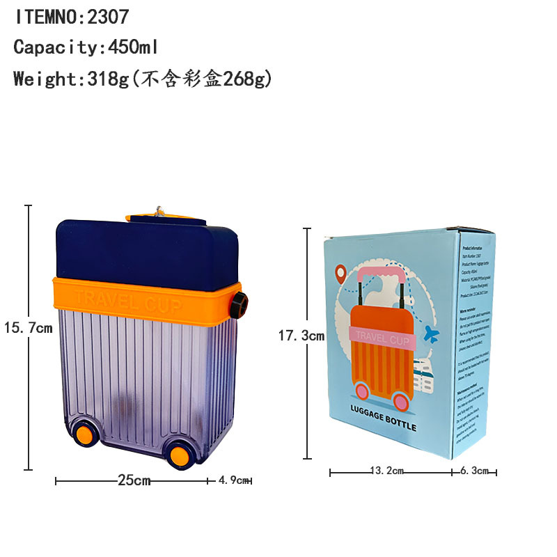 Cross-Border E-Commerce Cartoon Cute Luggage Straw Cup Portable Lanyard Strap Good-looking Factory Direct Sales