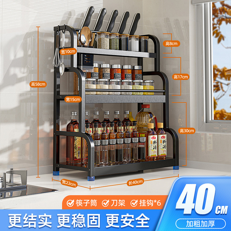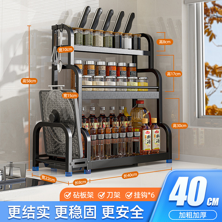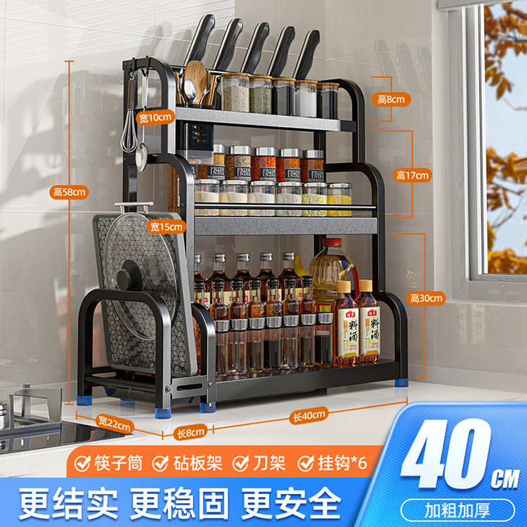 [Three Layers 40 with Baffle] Knife Rest + Chopping Board Rack + Chopstick Canister + Hook * 6