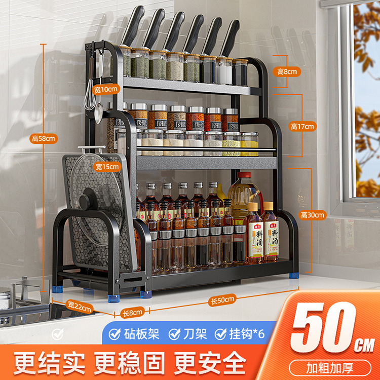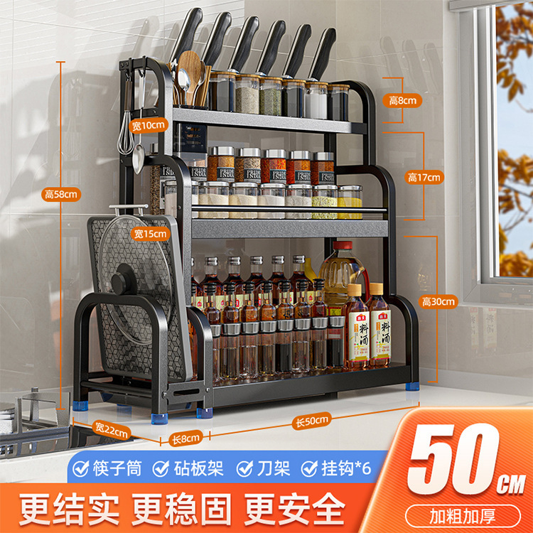 [Three Layers 50 with Baffle] Knife Rest + Chopping Board Rack + Chopstick Canister + Hook * 6