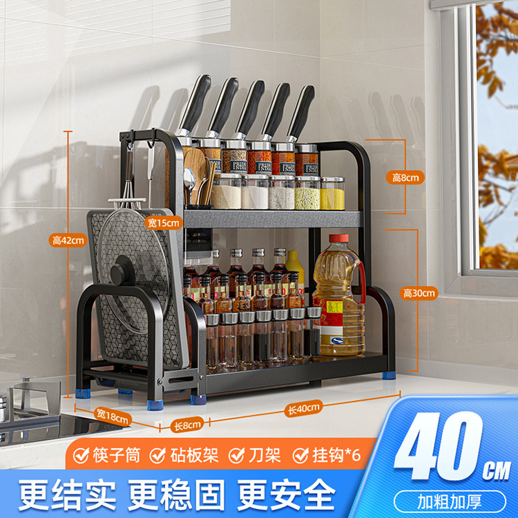 [Double-Layer 40 with Baffle] Knife Rest + Chopping Board Rack + Chopstick Canister + Hook * 6