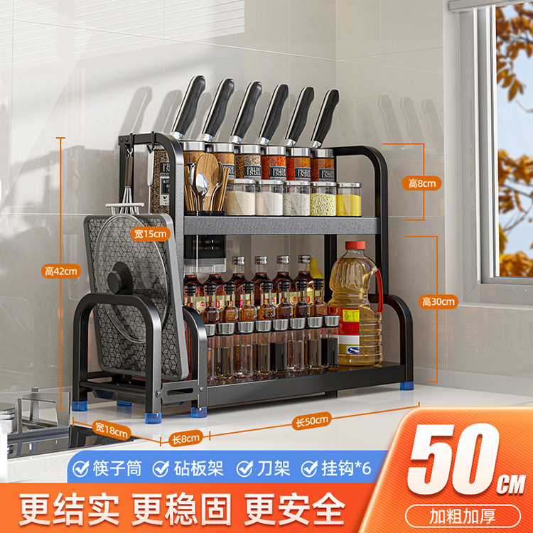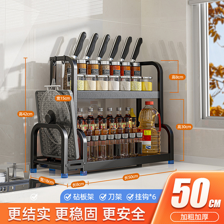[Double Layer 50 with Baffle] Knife Rest + Chopping Board Rack + Chopstick Canister + Hook * 6