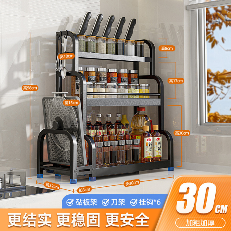 [Three Layers 30 with Baffle] Knife Rest + Chopping Board Rack + Chopstick Canister + Hook * 6