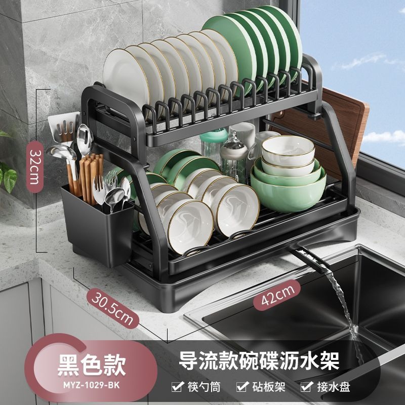 Black * Folding Dish Main Frame + Cup Holder + Knife Chopstick Canister + Chopping Board Rack