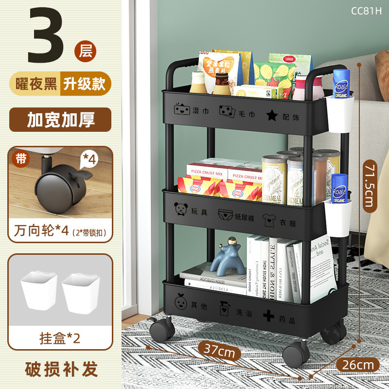 28cm Double Armrest 4 Layers Black + Wheel +2 Wall-Mounted Box