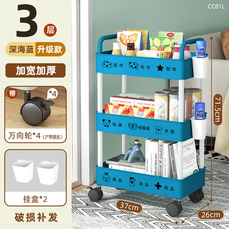 28cm Double Armrest 4 Layers Blue + Wheel +2 Wall-Mounted Box