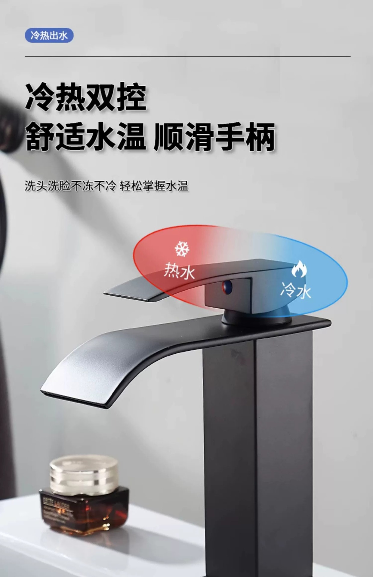 Black Flat Nozzle Waterfall High (Including Hose)