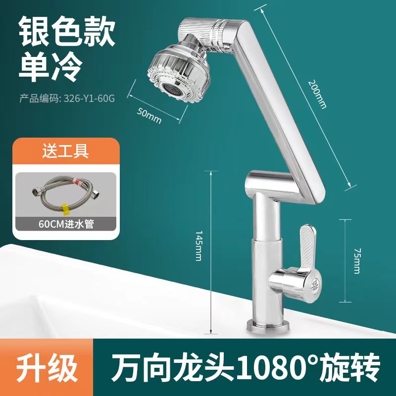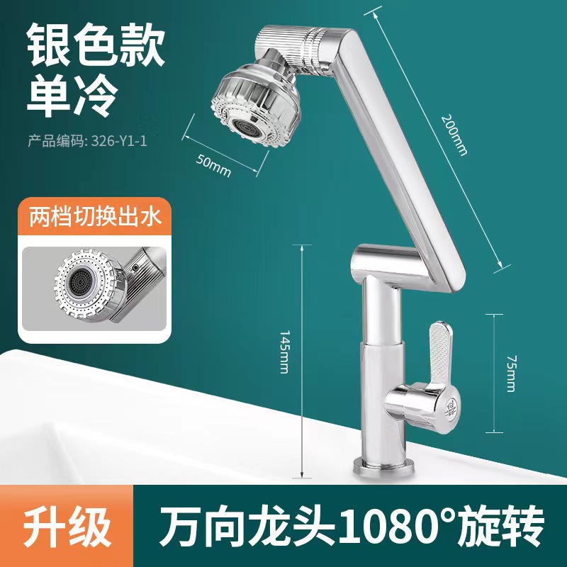 Silver Stainless Steel-360 Degrees Four Rotatable-Single Cold